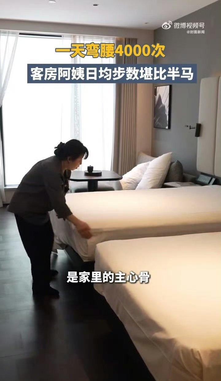 客房阿姨日均步数堪比半马很多人忽略了基层服务者的辛苦,客房阿姨每天高强度运转,只