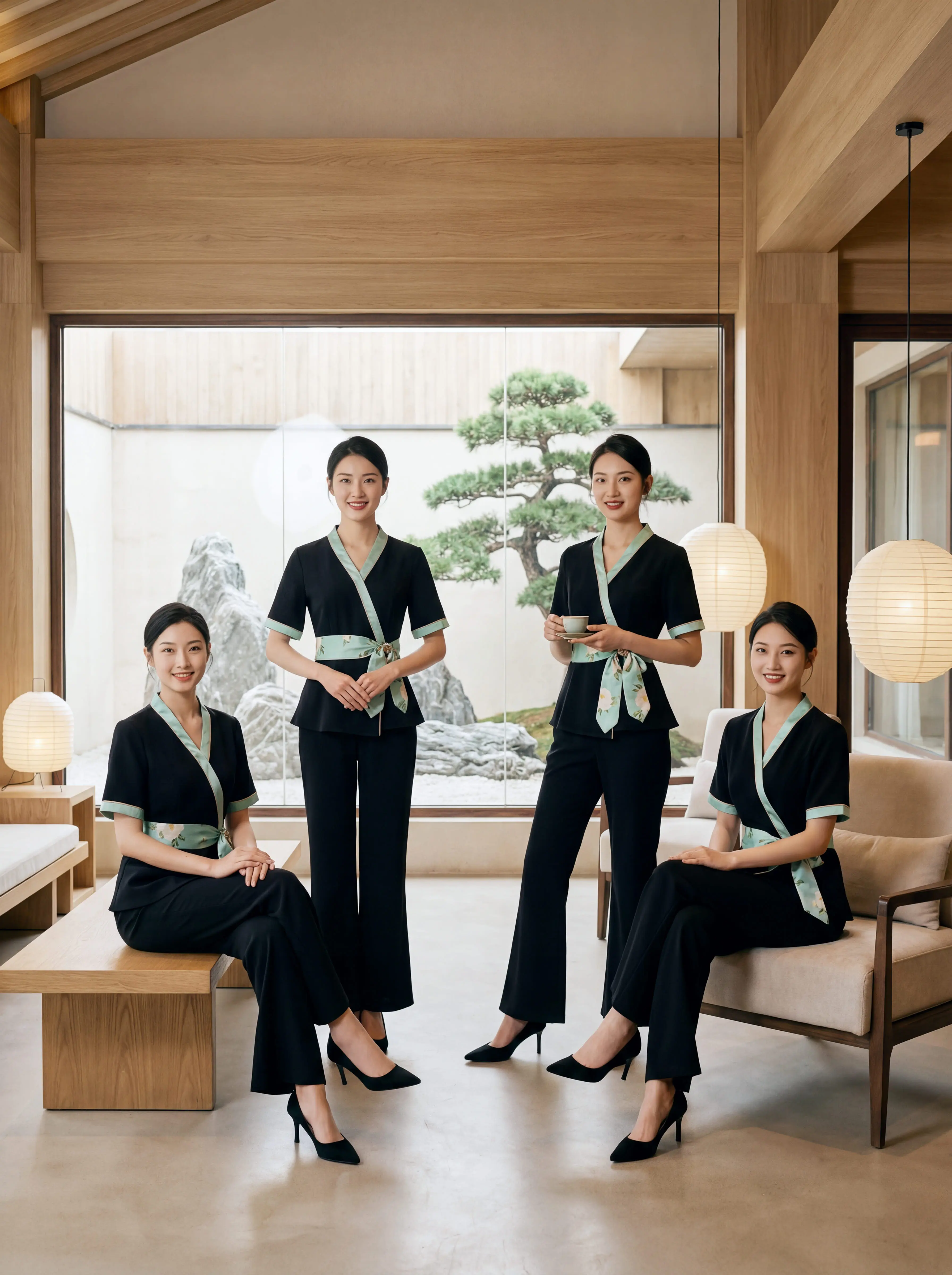 终于挖到这套颜值与实力并存的工装了。改良汉服领 + 腰间系带,自带东方美学的优雅与温婉,接待客户时气质直接拉满。