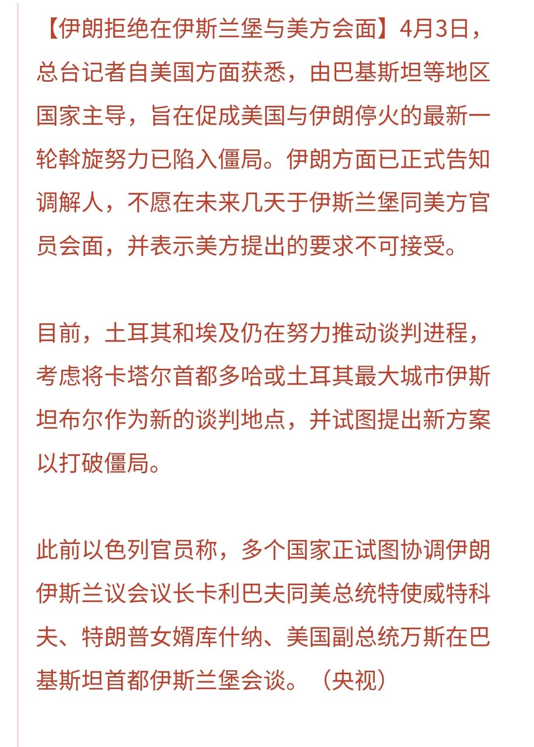 基金:这应该是一个利空消息 昨天基金亏损5867元,基金持有701465元,现金持有1253220元,资产总额1954686元,还是在195万附近震荡。 上周的五个交易日中,一赢四亏,一个交易日盈利,四个交易日亏损,周亏损1901元。 本月的三个交易日中,一盈两亏,一个交易日盈利,两个交易日亏损,月收益7939元。 今年以来亏损20339元,亏损率2.05%,跑赢了全国35.09%的基民,也跑赢了沪深300指数4.09%的下跌幅度。 近一年以来收益376645元,收益率27.82%,跑赢了沪深300指数15%的上涨幅度。 持有的基金中,昨天晚上净值更新以后,上涨的只有5G板块,下跌幅度最大的三个板块是:海外互联网板块,白酒板块,军工板块。 中东局势方面,伊朗已经拒绝与美国在巴基斯坦会面,认为美国人提出来的要求不可接受,见下面的截图9。 1:最有希望进入面对面会谈的幹旋已经陷入僵局,这是因为双方的目标相距甚远,而且很难在短时间内缩小差距。 2:战争中的和解,通常会在两种情况下发生,一种是战场胜负已判,另一种是长期打斗胜负难判。现在的情况是战场胜负还没有分出高下,虽然在打斗中,但还是处于短期的打斗中,还没有进入长期的拉锯战,所以,很难会进入面对面的会谈。 3:在短期内难以决出胜负的战争,通常会边打边谈,这个边打边谈有可能会拖上几年,不可能通过某一次的谈判或者某两次的谈判就能达成协议,打斗中会谈,在会谈中打斗,而且随着形势的变化,双方的要价也会存在着变化。 4:如果这一次也是短期内很难决出胜负,在时间上就对伊朗有利,现在最想在很短时间内决出胜负的是美国人,他们调集了大量的兵力来到了伊朗周边,兵力的远程调集是要花费大量的金钱,以美国人的德行,他们自己是不会花这个冤枉钱的,那么肯定要在战场上获得速战速胜,他们不会被伊朗人投入地面战争的泥潭,可以说美国人坏,但你不可以说美国人傻。 5:如果美国人想速战速决,剧烈的冲突将会很快发生,这一战将会决定整个战争形势的走向,我认为美国人的胜率更大,这并不是我偏向于美国人,而是在实力面前,很多事情是力不从心的,但愿美国人的胜利是一个惨胜,这大概率只能是一个愿望。 6:如果美国人在很短的时间内取得快速的胜利,伊朗以及霍尔木兹海峡全部在美国人的控制之中,金融市场会很快恢复平静,对我们来说并不一定是一个好消息,就像委内瑞拉一样,美国人控制了委内瑞拉,美国人控制了委内瑞拉的石油和矿产,受益方当然是美国,有了受益方,肯定就会有受损方,你觉得我们是不是受损方当中的一员,伊朗局势当然也是这样。 7:美国人是特别坏的,他们就是控制石油资产,控制矿产原材料,以抑制我们强大的制造业,他要的是美国再次伟大,我们要的是中华民族的伟大复兴,他们控制委内瑞拉,他们攻打波斯伊朗,看似与我们无关,其实是对我们的步步紧逼。 只要战争还没有结束,对金融市场就是一个负面的消息,只要美国人取得了决定性的胜利,对我们的金融市场其实也是一个负面的消息,你能相信伊朗能打败美国人吗?反正我是不相信。 在局势不明的情况之下,我们谨慎一点是没有错的,君子不立于危墙之下,看到墙要倒了,我们从墙根离开,如果这堵墙没有倒,我们再回来又何妨? 伊朗拒绝在巴基斯坦的会谈,是一个利空消息,但假期刚刚开始,事情还存在着变数,假期期间玩的开心就好,玩基金只是一个投资,玩基金并不是我们的全部,玩的开心才是最重要的。 置顶文章,还有许多人没有看,没有看的人去看一下,大家帮忙评论点赞,转发和分享,谢谢大家的支持。
