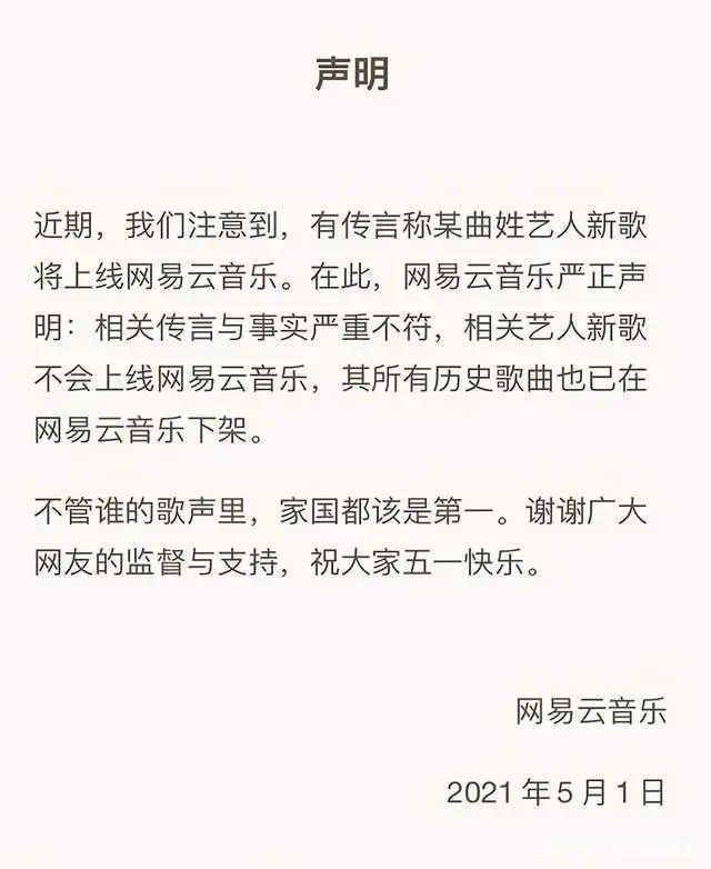 有意思的是该平台曾经承诺下架曲婉婷的歌曲。但曲婉婷新歌还是在该平台上线。