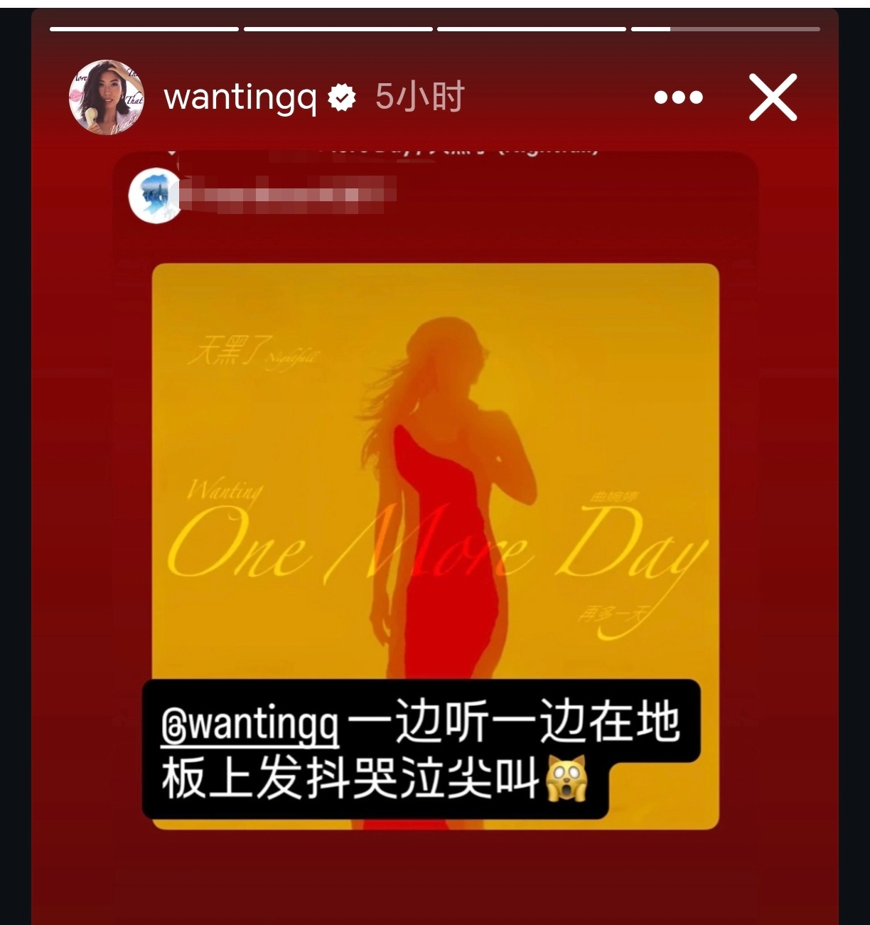 3月29日,曲婉婷微博等平台账号被炸。4月3日,曲婉婷在网某云发布新歌《天黑了》,非常简短,疑似在暗示和抱怨,粉丝还表示听哭了。