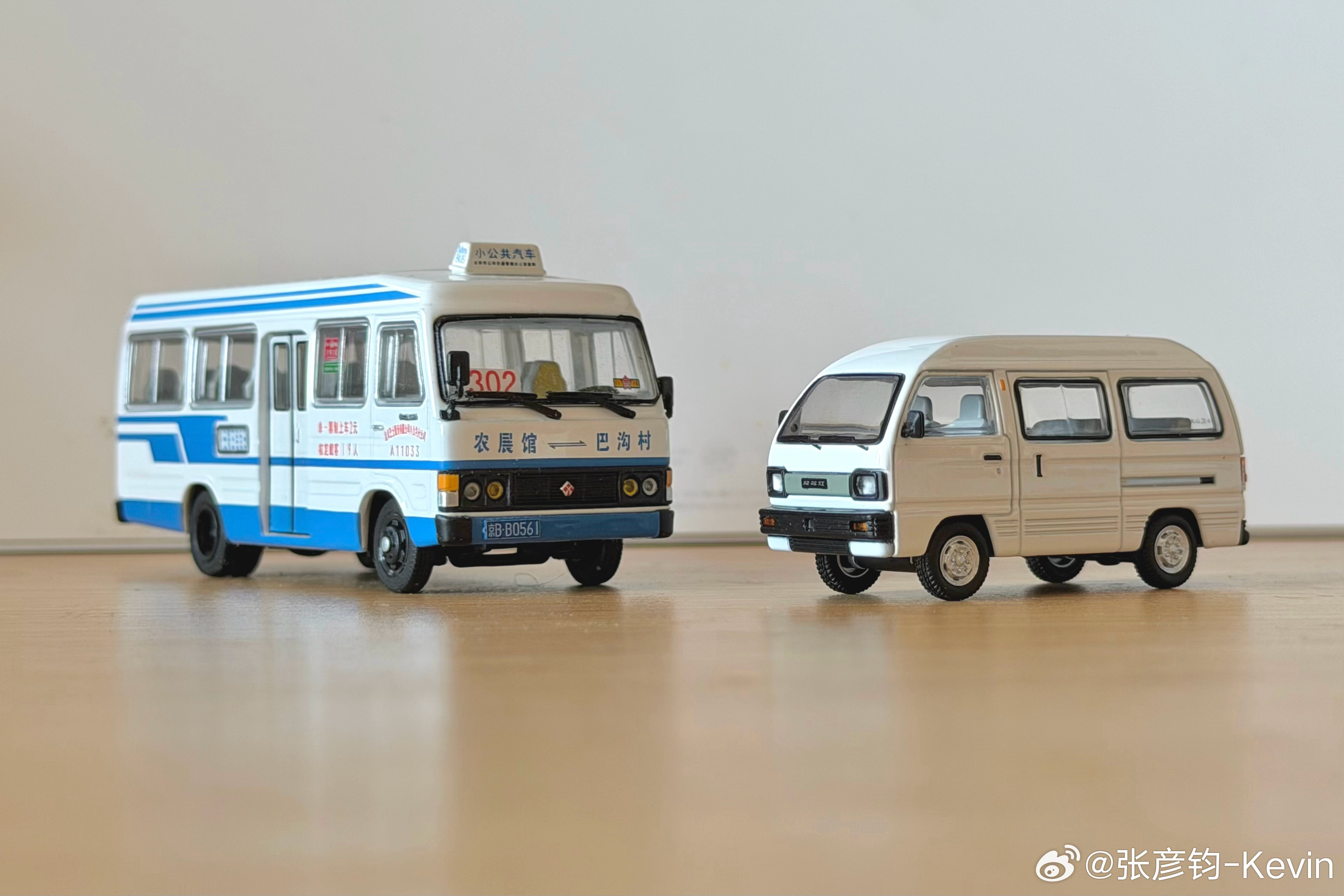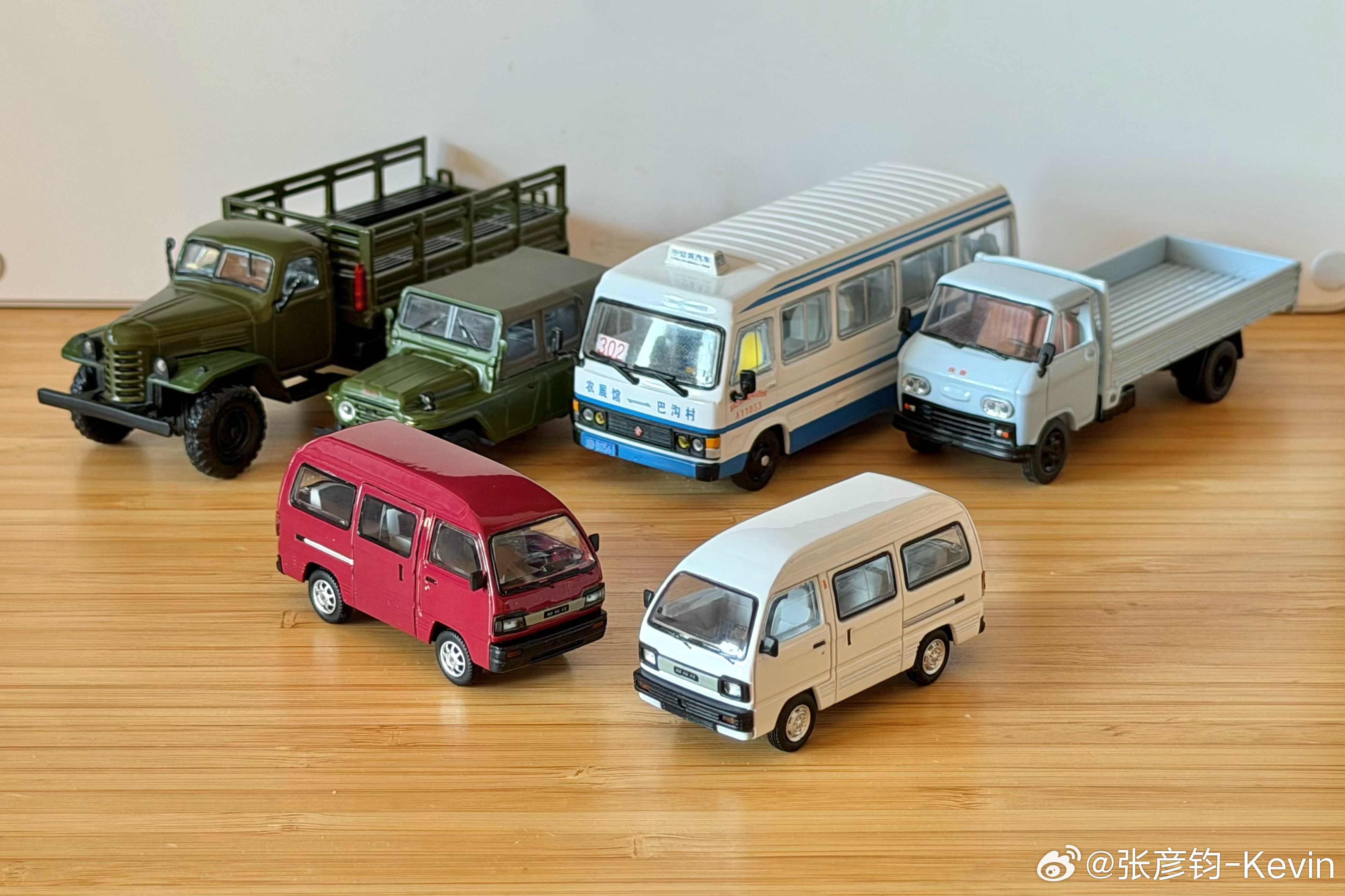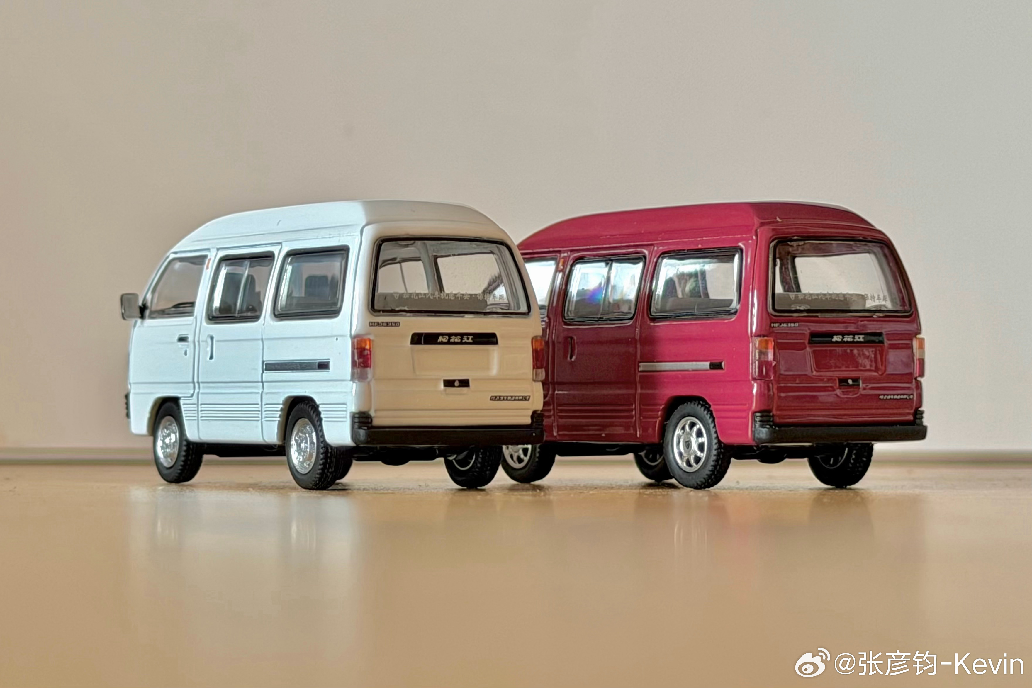 送给我两台松花江,喜欢!去年模型展看的1:64松花江面包车,终于到手了!和后面的