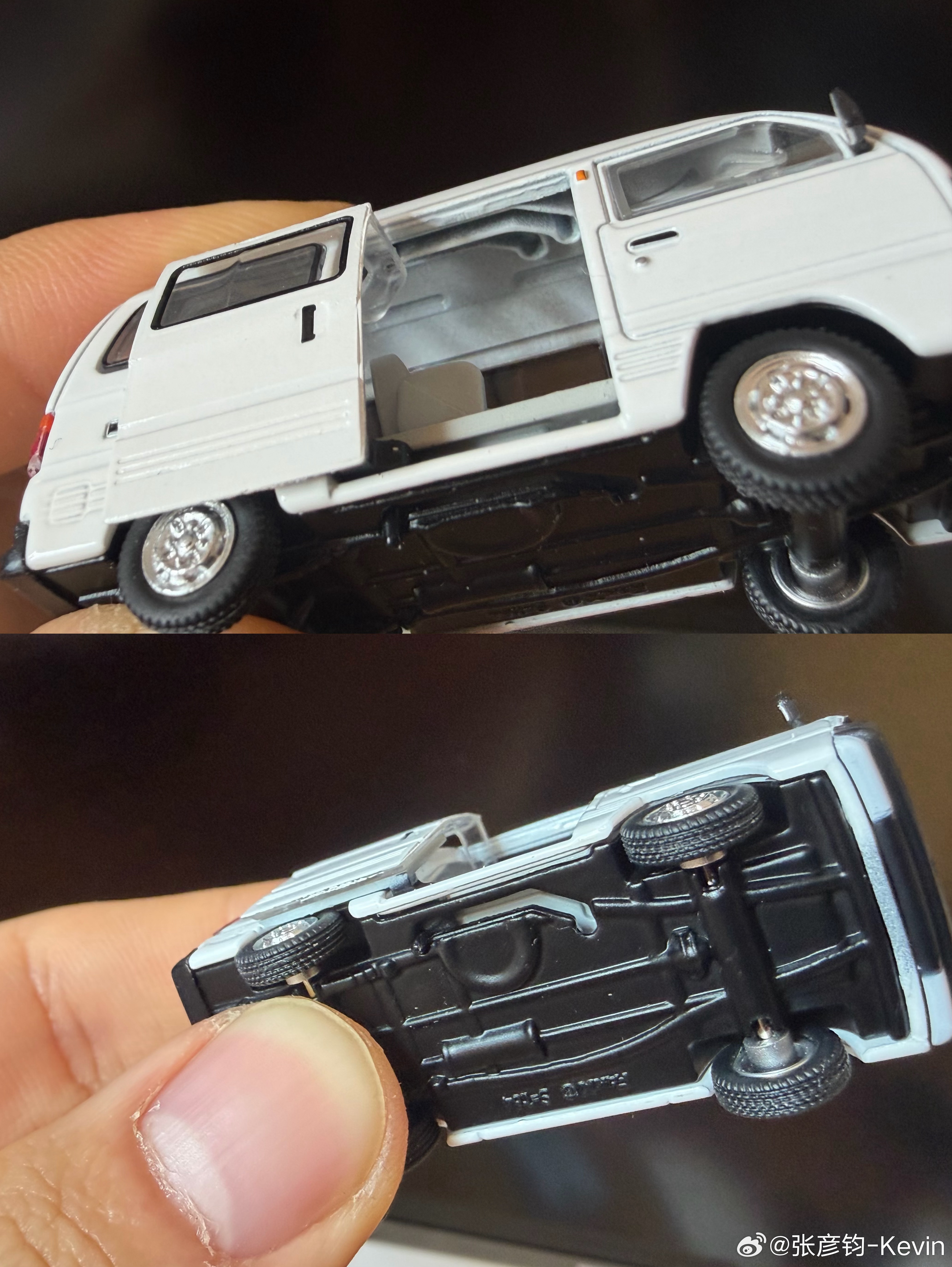 这车我觉得精髓就在于,后窗那个“松花江汽车祝您平安·请保持车距!”,型号名牌和哈飞厂标做的也非常清晰,侧面还有侧滑门。虽然是64比例,但你架不住原车就小啊,这些细节看着真好。凯文聊车