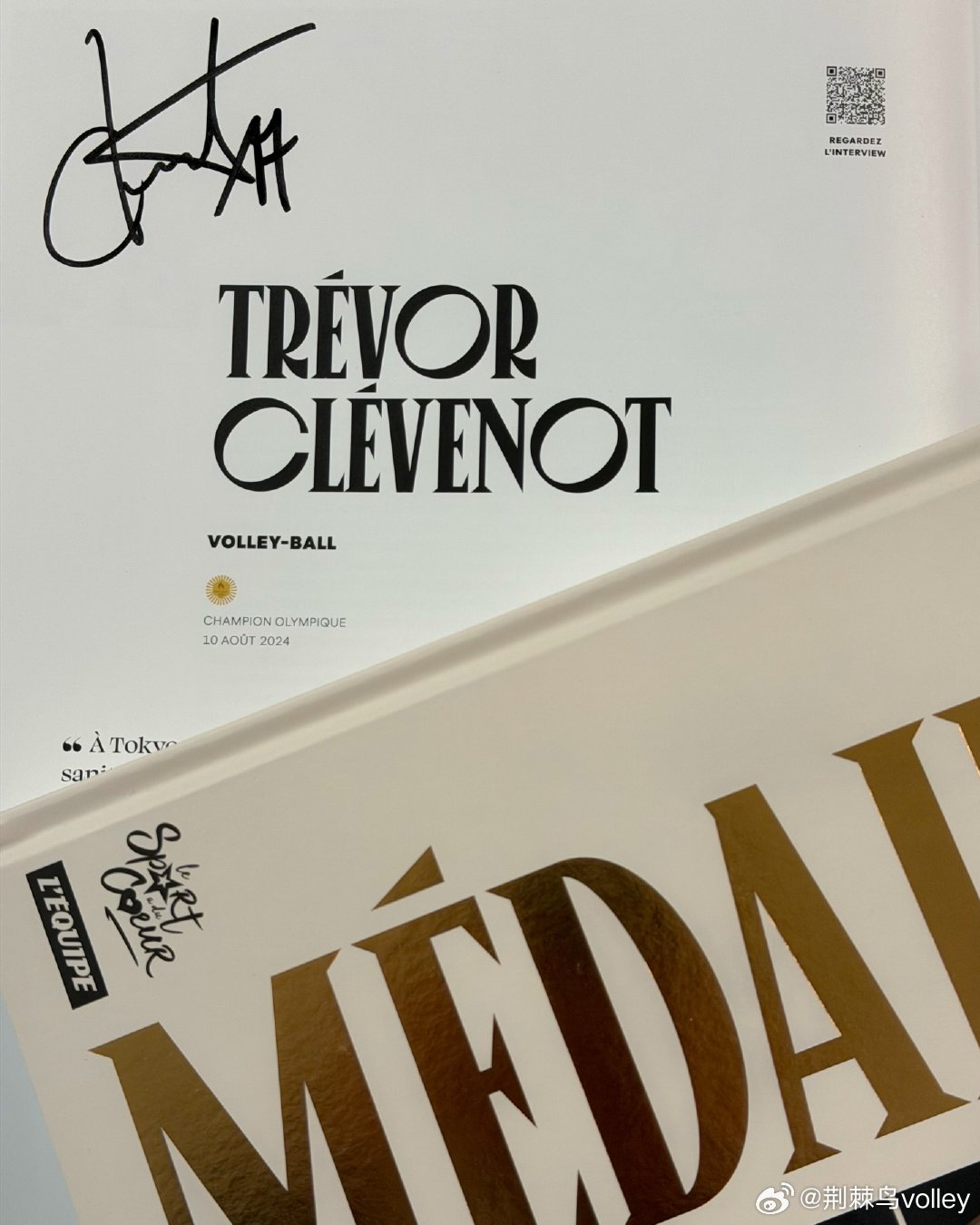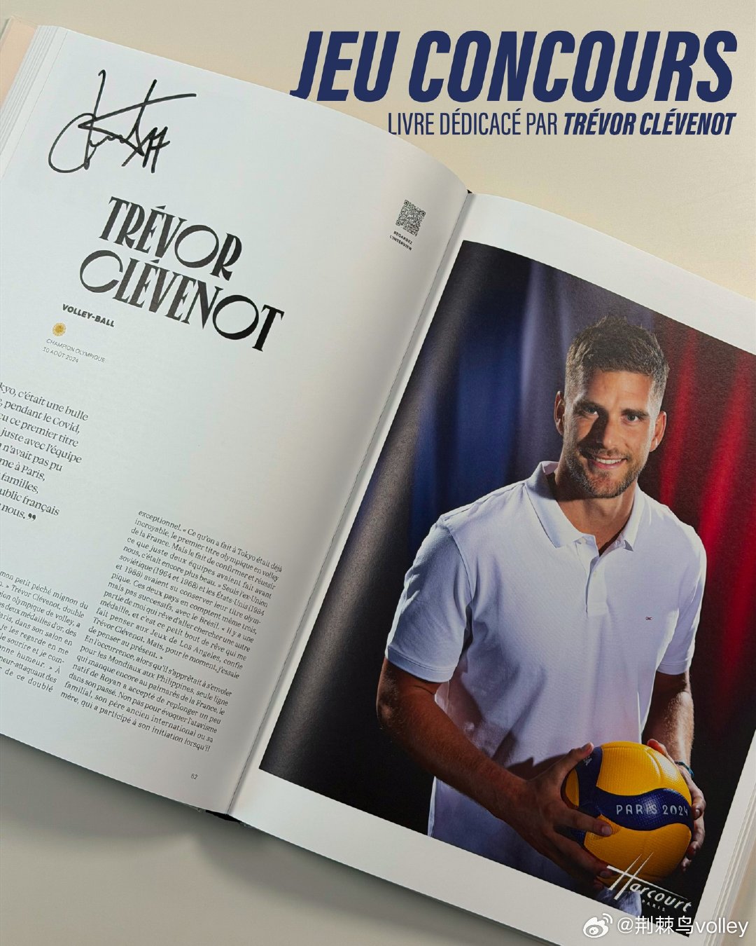 法国排协推出由奥运双料冠军克莱维诺亲笔签名的《获奖者》书籍。男排 法国男排排球