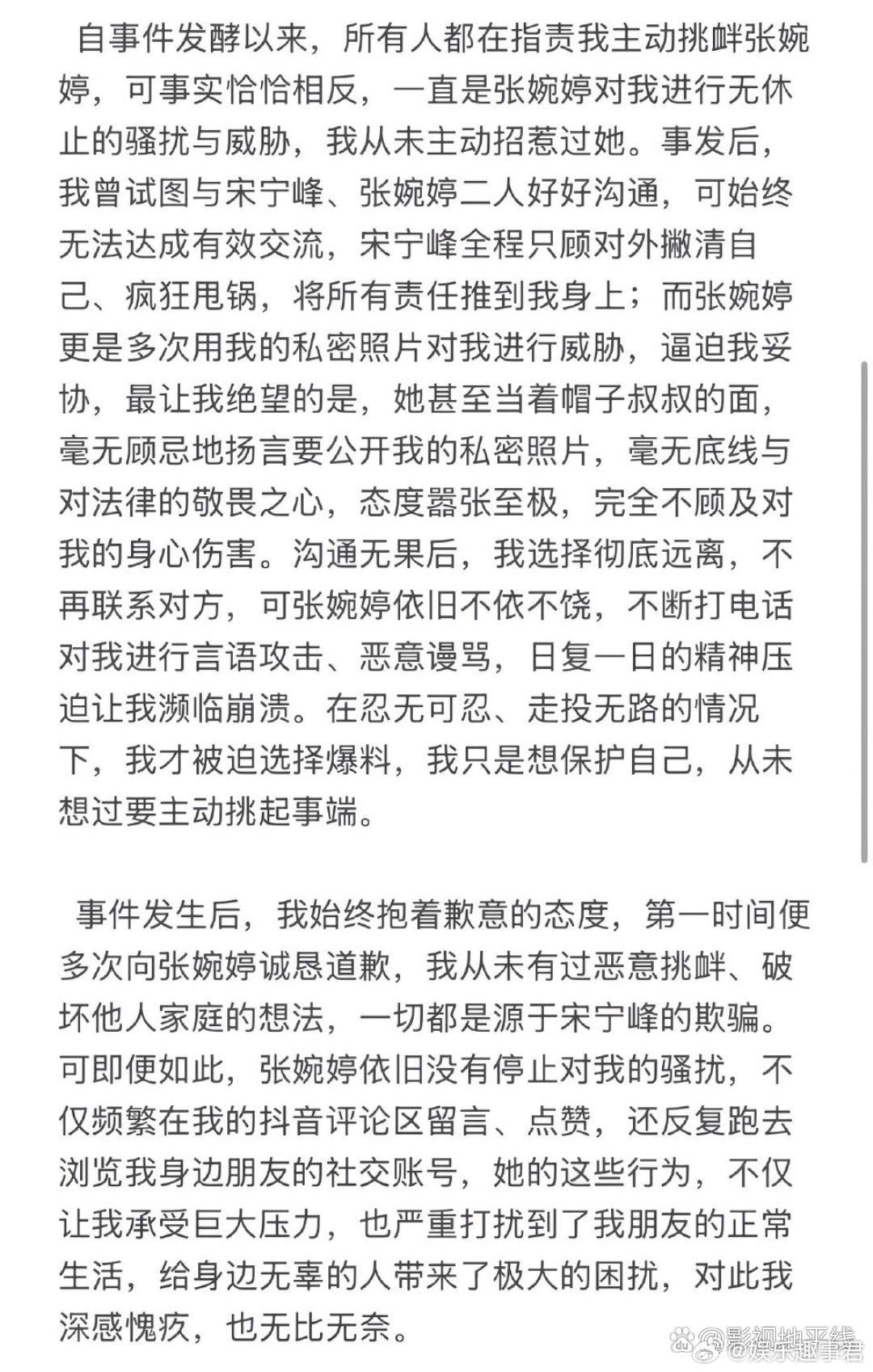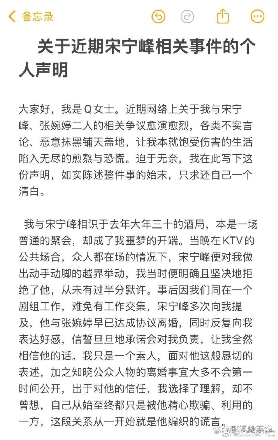 Q女士声明Q女士回应插足宋宁峰张婉婷
