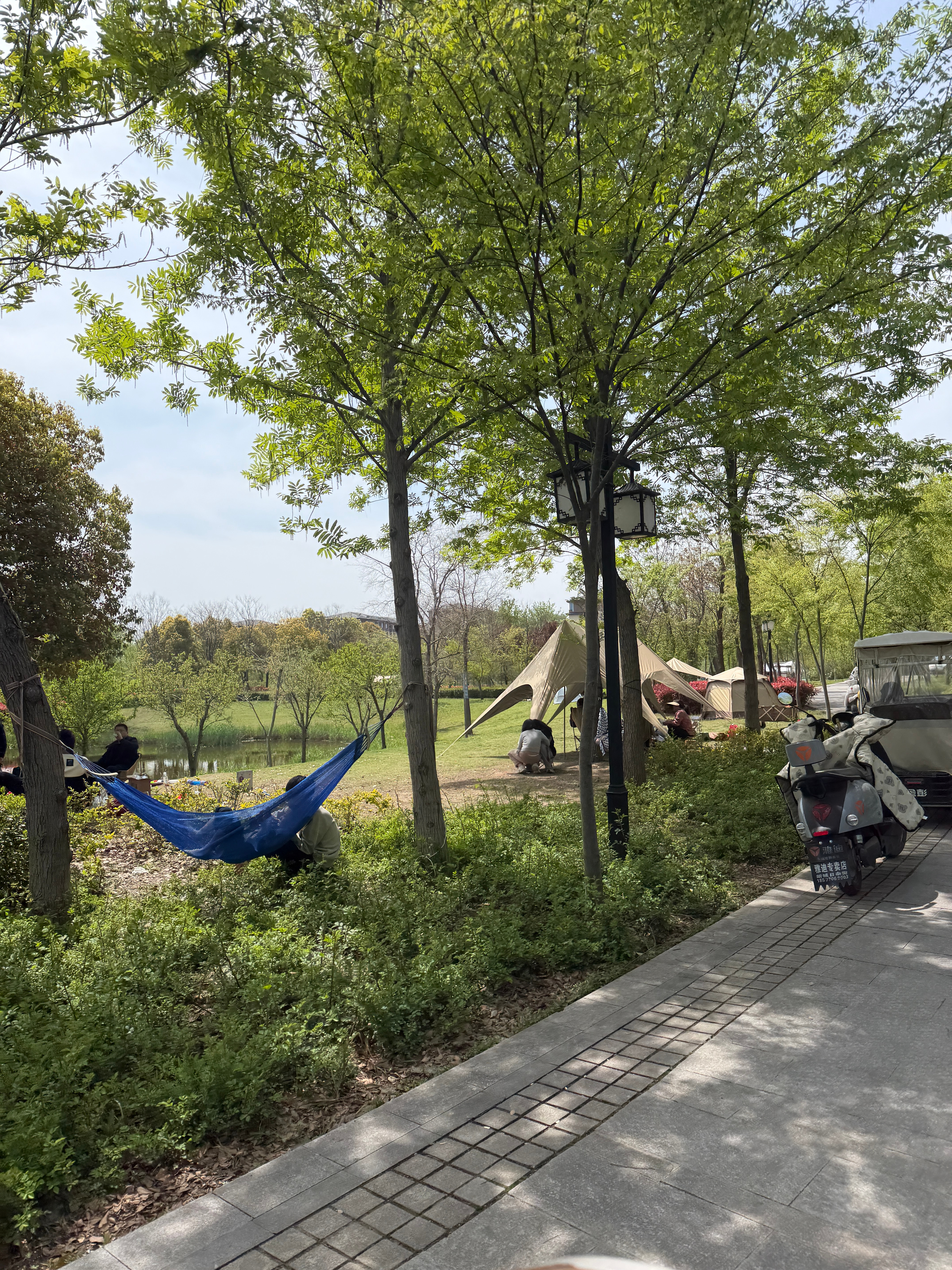 小区旁边都是来野餐的 真好啊 永城的姊姊日月湖不想跑的来