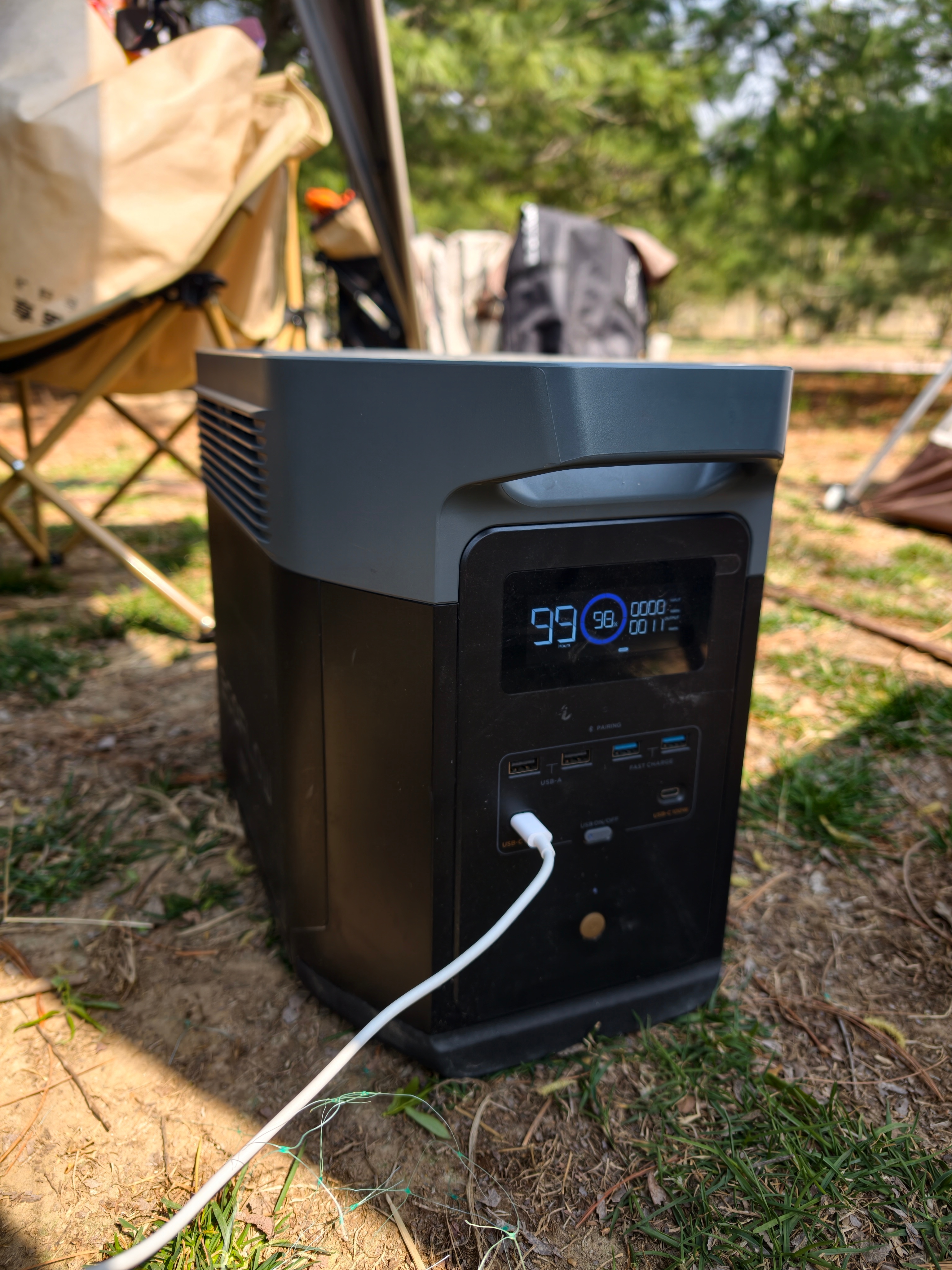假期出来公园露营,以前都带气罐,太麻烦了。今天去韩哥车库借了一个正浩移动电站,2度电。4个五孔,4个USB,2个TC ,还有很多我用不上的接口,真方便。2度对我来说有点大才小用了,而且沉。1度电日常出来玩足够,还能轻不少,我准备弄一个。