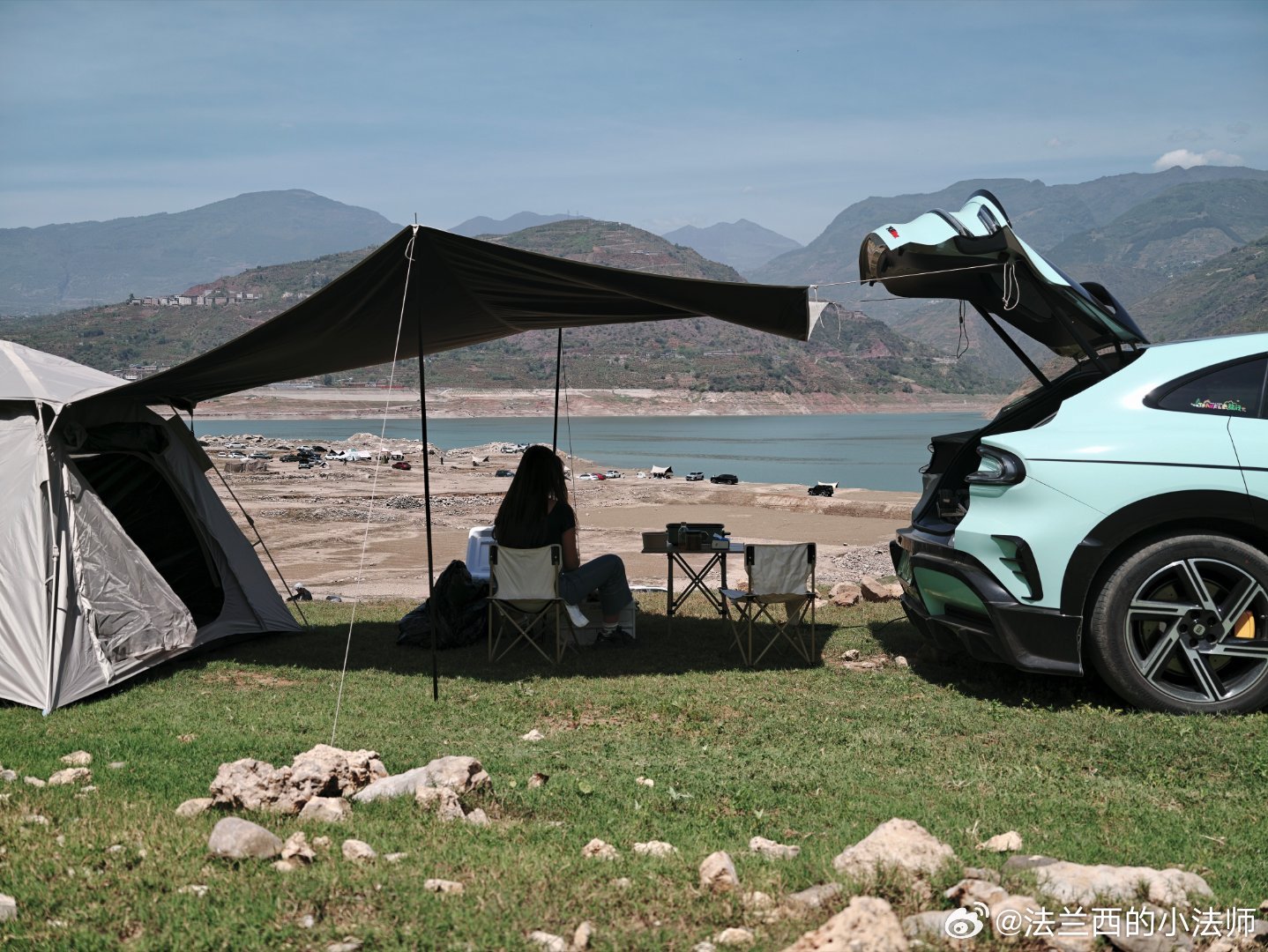 嘿嘿,这么好的天气,出来自驾野炊一下!电车就是方便,接上外放电整个小烧烤!稳得很!