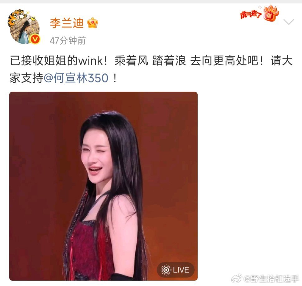 李兰迪回应何宣林wink李兰迪暖心回应何宣林wink,一句“乘着风 踏着浪 去向更高处吧”,是双向奔赴的姐妹情谊乘风热度乘风2026