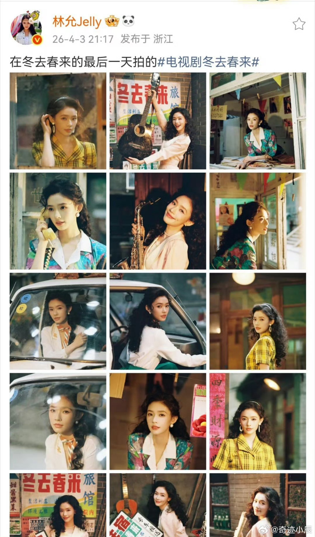 林允在冬去春来的最后一天拍林允在冬去春来最后一天拍摄港风大片,复古卷发搭配经典穿搭,90年代港片女主氛围感拉满,每一帧都温柔又鲜活。