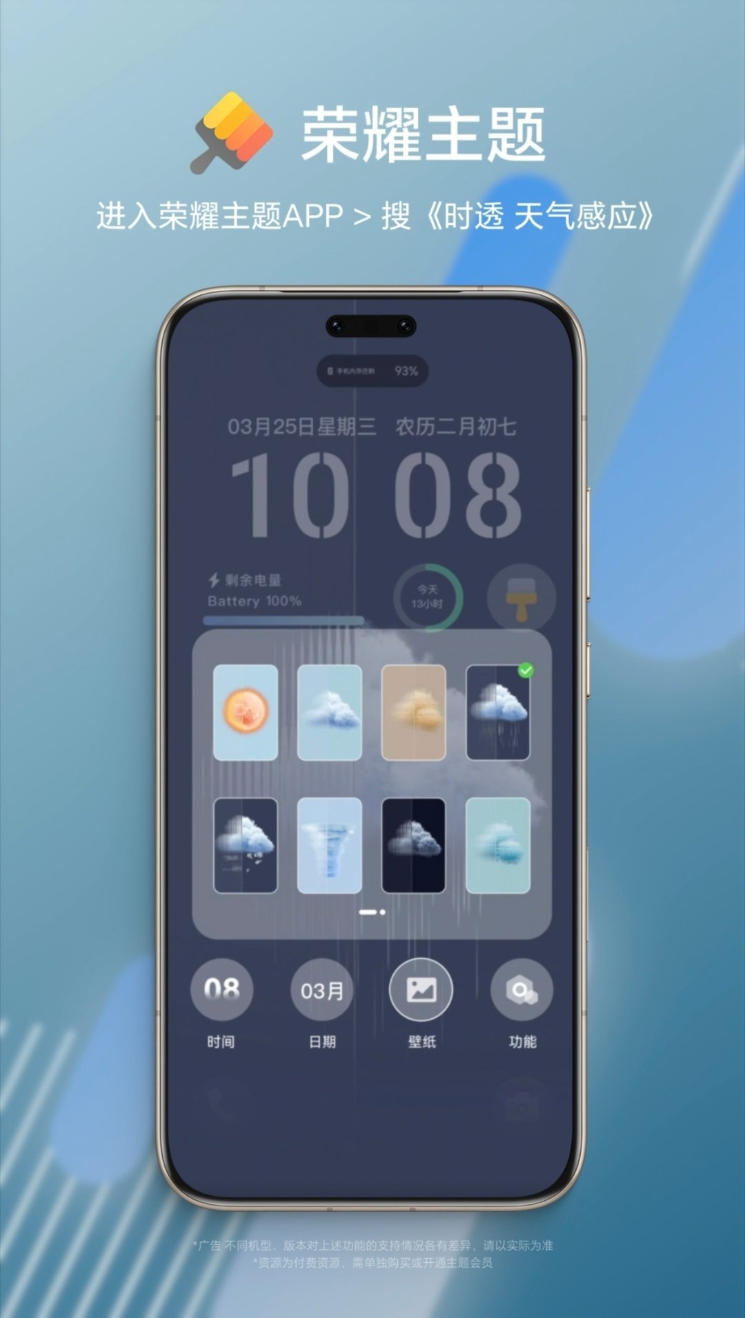 今天刚刚发现荣耀主题-时透 天气感应,真的很有意思,壁纸会随实时天气自动切换。面对这个清明多变的天气,时透天气感应用着太爽了。