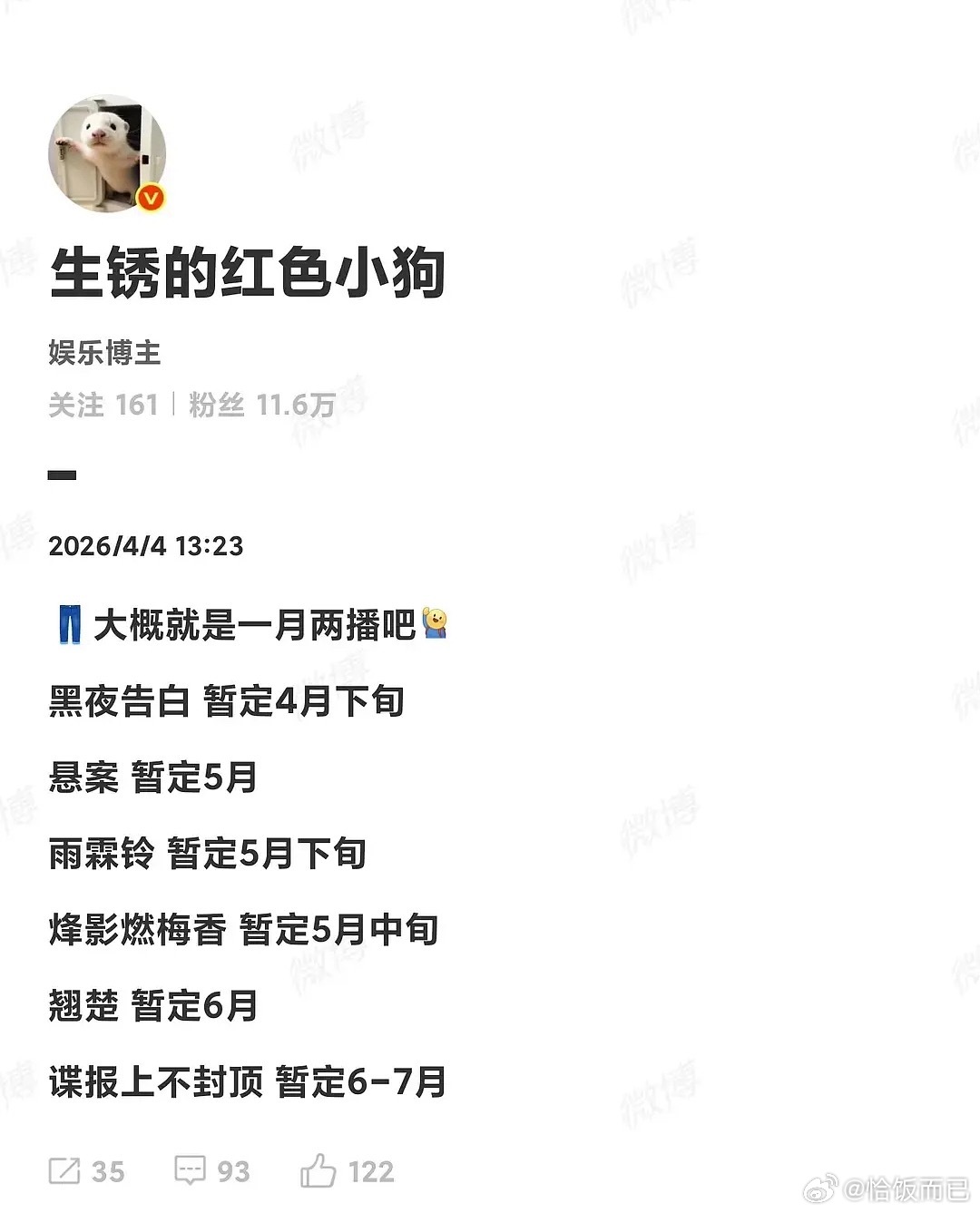 曝四大平台近期排播四大平台排播剧,6月档竞争好激烈(翘楚、谍报上不封顶、梦花廷、三线谜回、莫离、醉梦、祯娘传、良陈美锦、炽夏)都在6月档