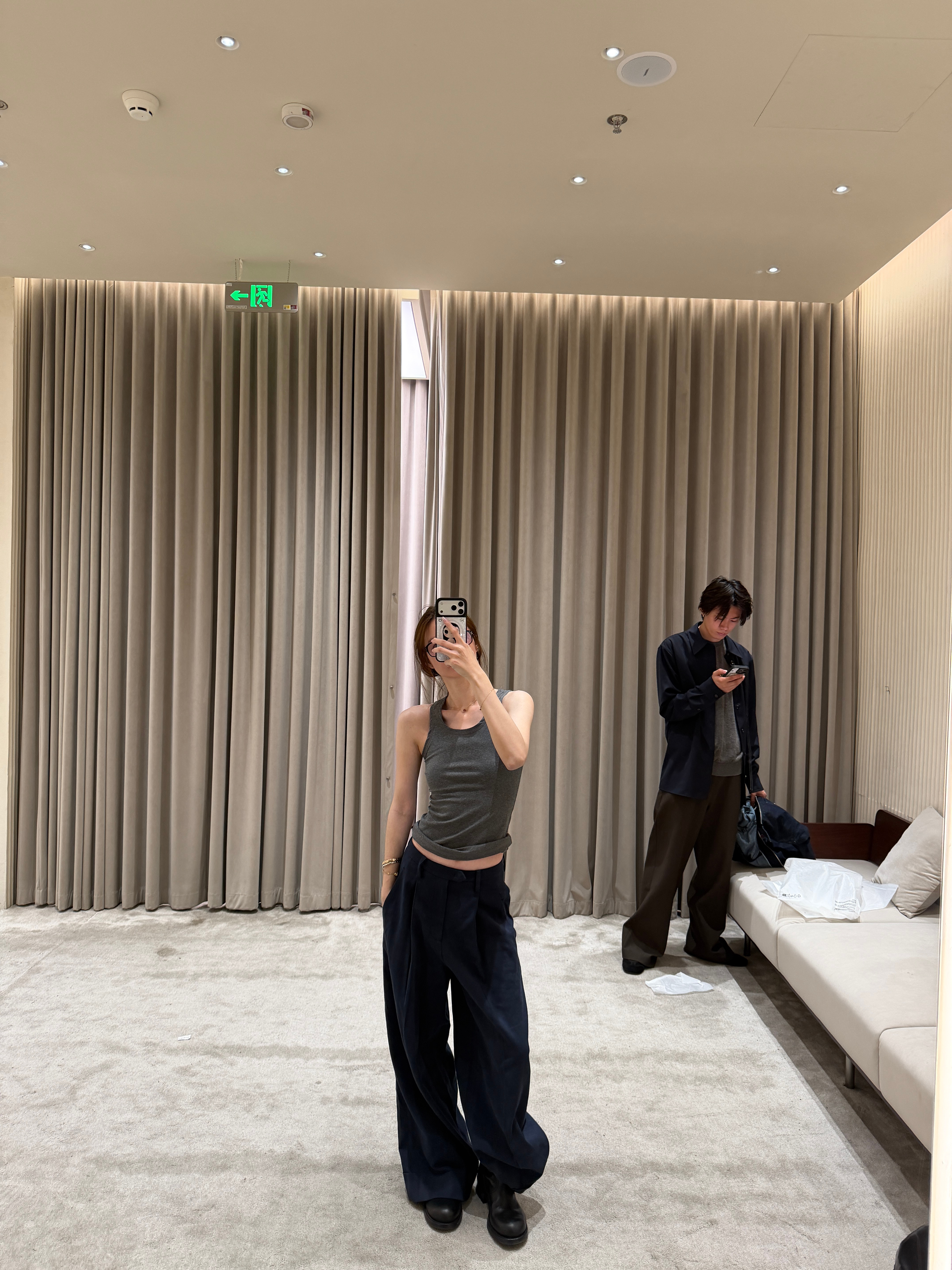 这个裤子是和上一期长的蓝西装配套的没上一套 上了蓝西装现在单穿出来也很好看