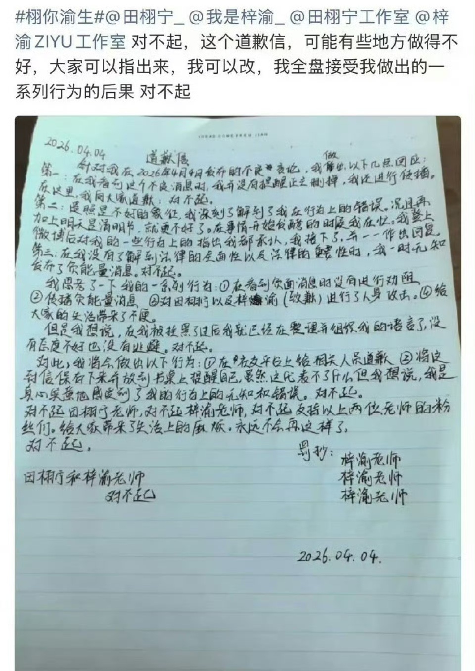 撸穆粉丝和栩你渝生粉丝的道歉信栩你渝生粉丝和撸穆粉丝的道歉信栩你渝生粉丝和撸穆粉丝的手写道歉信,这是和解了吧,大家开开心心磕CP多好!