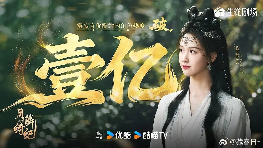 恭喜陈都灵,鹅酷双平台女主剧均破万且平台角色热度均破亿!