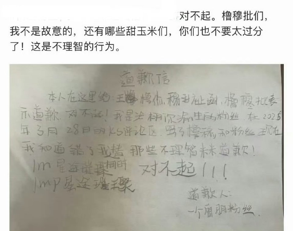 栩你渝生粉丝和橹穆粉丝的道歉信,还是要理性上网,理智追星啊栩你渝生粉丝和橹穆粉丝的道歉信