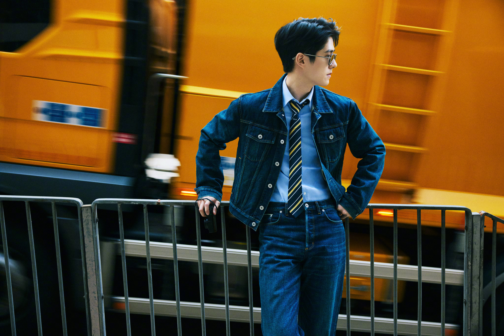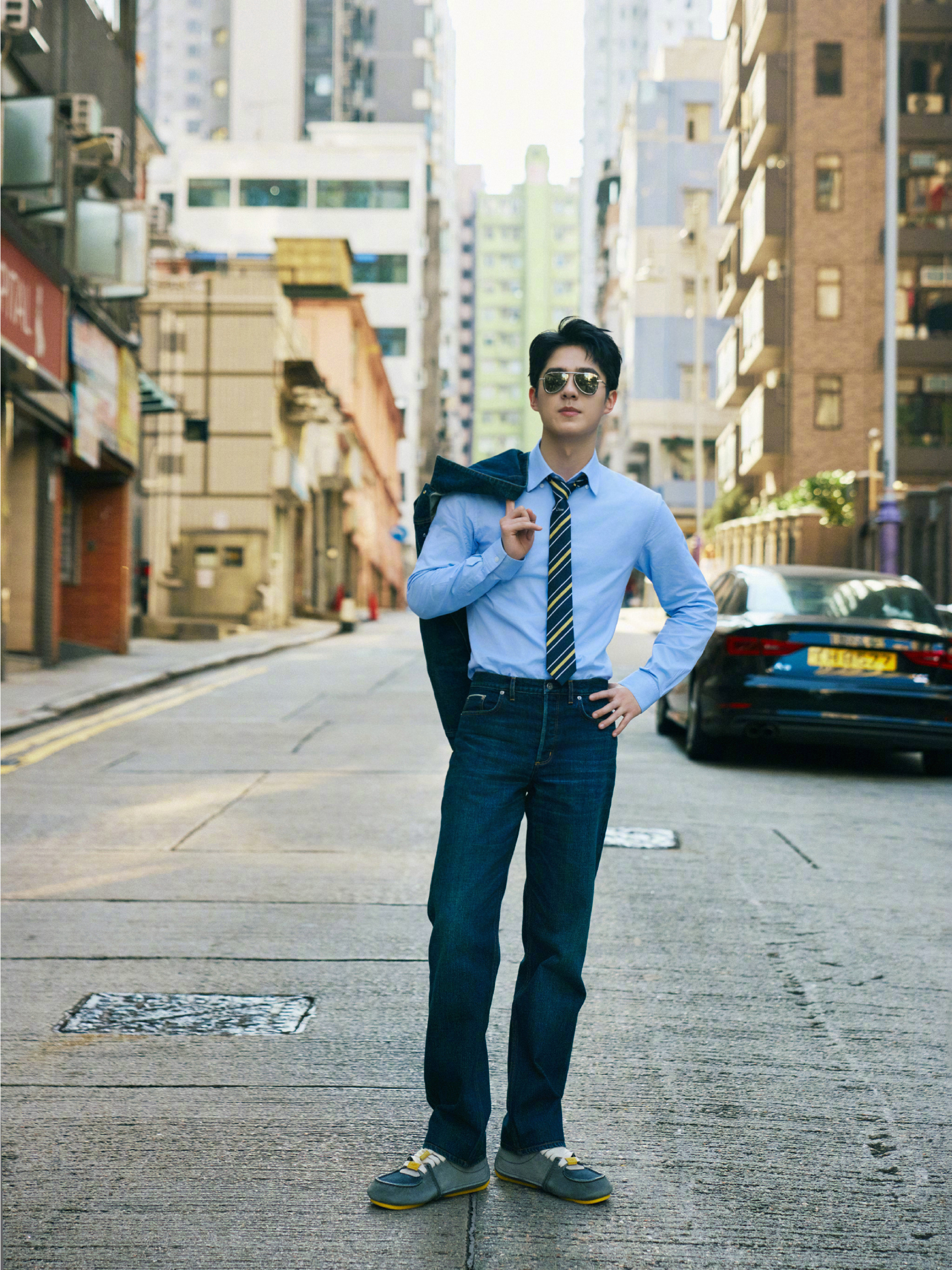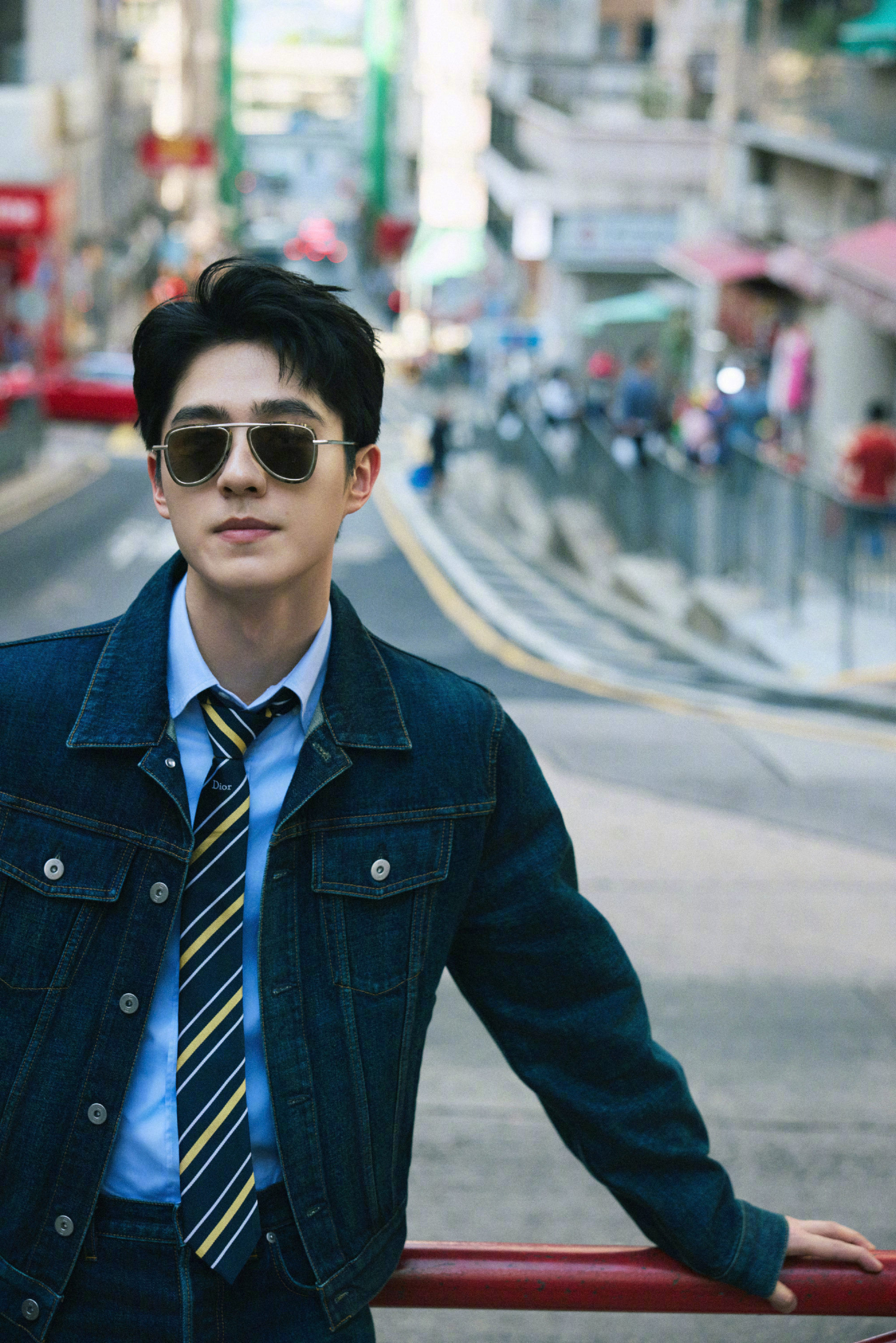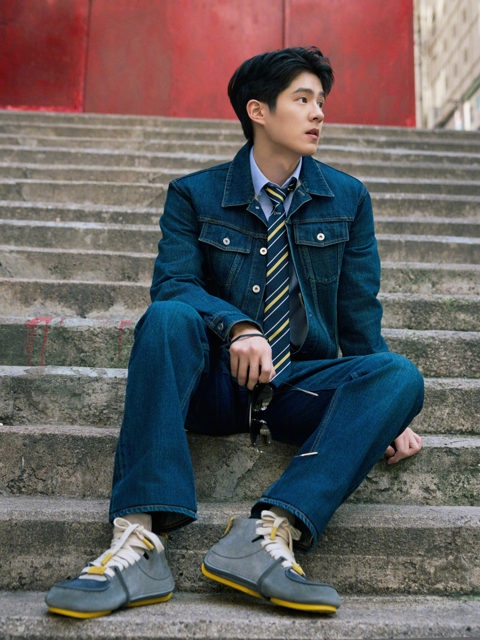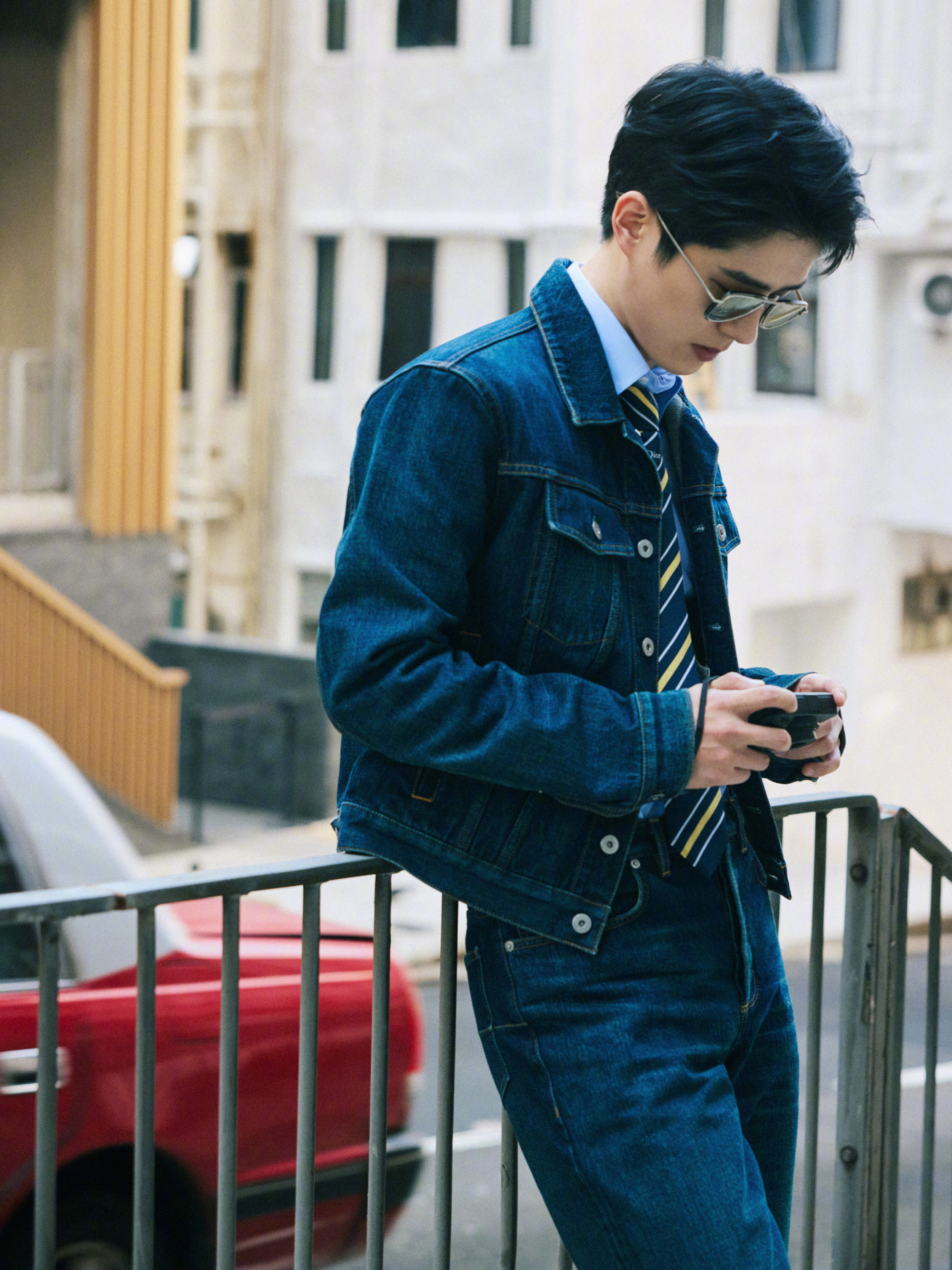 刘昊然 in Dior 📷 牛仔套装,蓝衬衫、条纹领带… 依旧这般清新俊朗,穿行于老街的车水马龙里。时尚灵感解读风格大赏