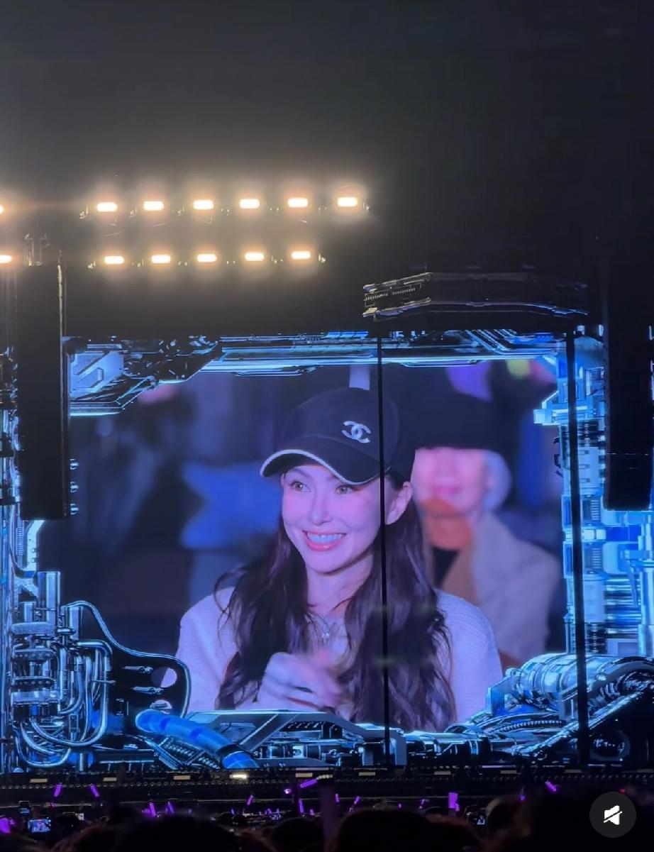 4月4日,周杰伦杭州演唱会第2场,昆凌与周杰伦的母亲叶惠美坐在台下的画面曝光,昆凌全程笑得合不拢嘴,可惜没带女儿过来。 前天晚上第1场的时候,昆凌带着女儿海瑟薇坐在第1排,和叶惠美一起。 这次昆凌只和叶惠美过来了,没有带海瑟薇。 昆凌戴了一顶帽子,脸上妆容精致,眼睛亮晶晶地,一看就有混血儿气质。 叶惠美则表情比较严肃,一直看着台上。 演唱会期间,周杰伦分别给叶惠美和昆凌来了一个大屏特写,两人都笑了。 而网友拍到的坐在台下的昆凌笑得合不拢嘴,在台下还一直笑,她真的好幸福。