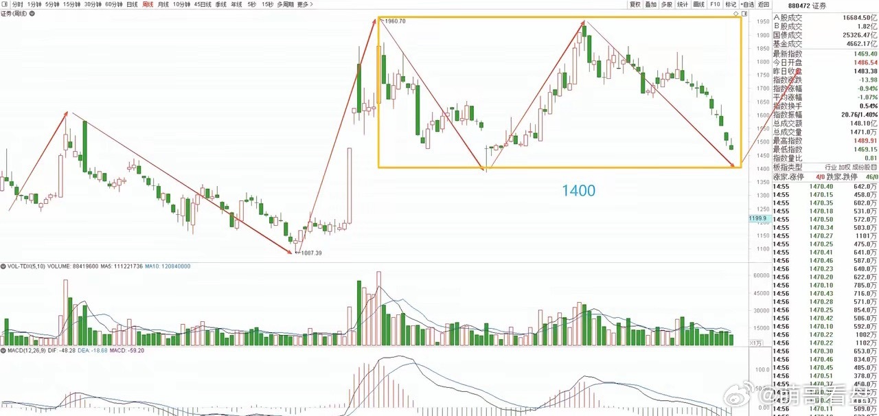 券商板块本周下跌2.45%,收了一根缩量长上影阴线,前半周走势还算平稳,基本已经给出短线止跌信号,但周四受外围影响,整体市场开始转弱,连续两天大幅下跌,直接打掉了原有的止跌信号,继续向下探底。从结构上看,目前已经接近去年低点,这个位置是中长线关键支撑区域,只要不破,就能构建一中枢上涨结构,后面还有机会再创阶段新高,从而带动大盘走出五浪上涨。但要是被有效击破,那整个市场行情可以说是彻底结束。从日线结构上看,这里继续延伸下跌中枢的离开段,而且没有任何止跌信号,不过从MACD指标来看,虽然不断新低,但绿柱已经越来越小,说明做空动能正在不断衰竭,随时会向上发生反转。所以这个位置已经没必要恐慌离场,而是反其道而行之,逢低布局,耐心等待。