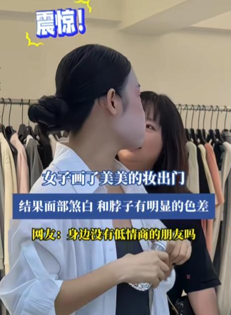 这是出门美美妆?白得赶上戏曲妆了! 广东,一女子画了美美的妆出门,结果面部煞白,像是戴了一副面具,和脖子有明显的色差。 可能化妆时,化妆镜过于小,只能看到全脸,看不到脸以外的地方。也可能是在阴暗的地方画得,所以光照充足的地方就会有色差。也有可能是干直播的,因为上镜比较吃妆,所以下手比较重。 关键路人一脸震惊她的妆容,她却无所谓。估计之前就有人说过,只是她不听,然后就没人说了。 对于别人的特殊癖好,我觉得实行不理解但尊重原则是最好的。这就是个人审美和喜好,人家自己开心、又没妨碍别人,不理解但尊重就够了。没必要指指点点,各自舒服最重要。
