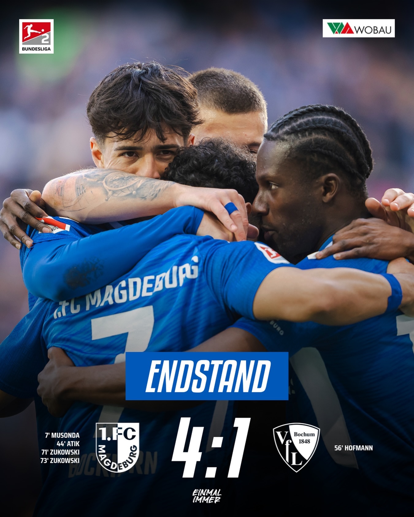 德乙 马格德堡主场4:1击败波鸿队,斯塔尔马赫🇵🇱第77分钟替补。