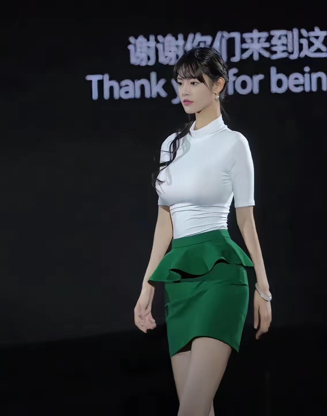一袭长裙的御姐型美女,那气场简直绝了。就说穿搭,黑色丝绒包臀紧身长裙配黑色缎面吊