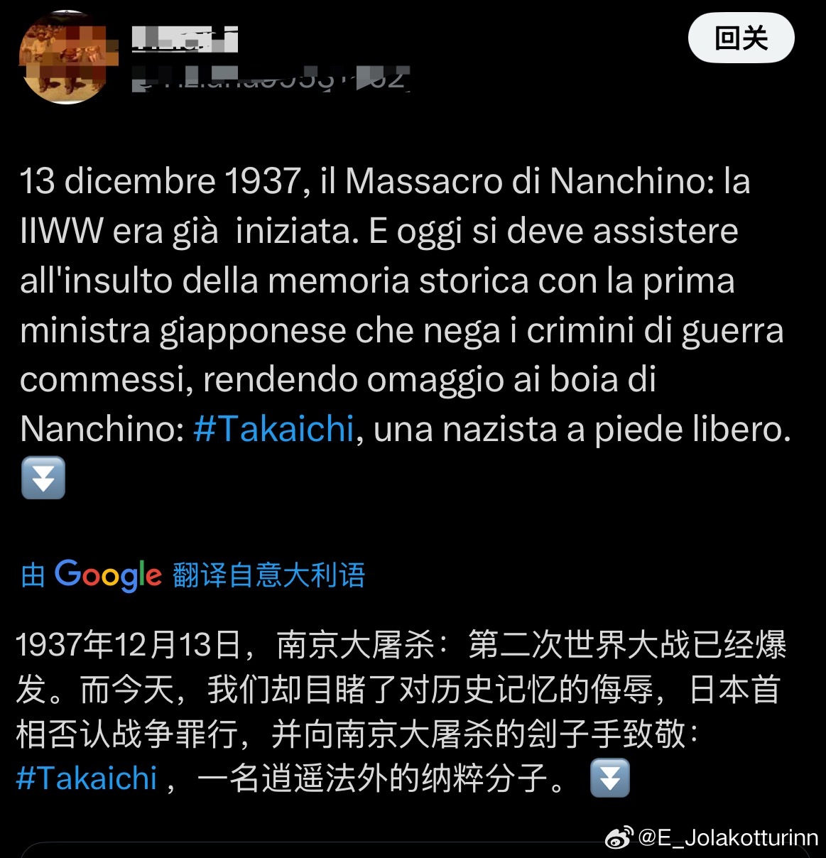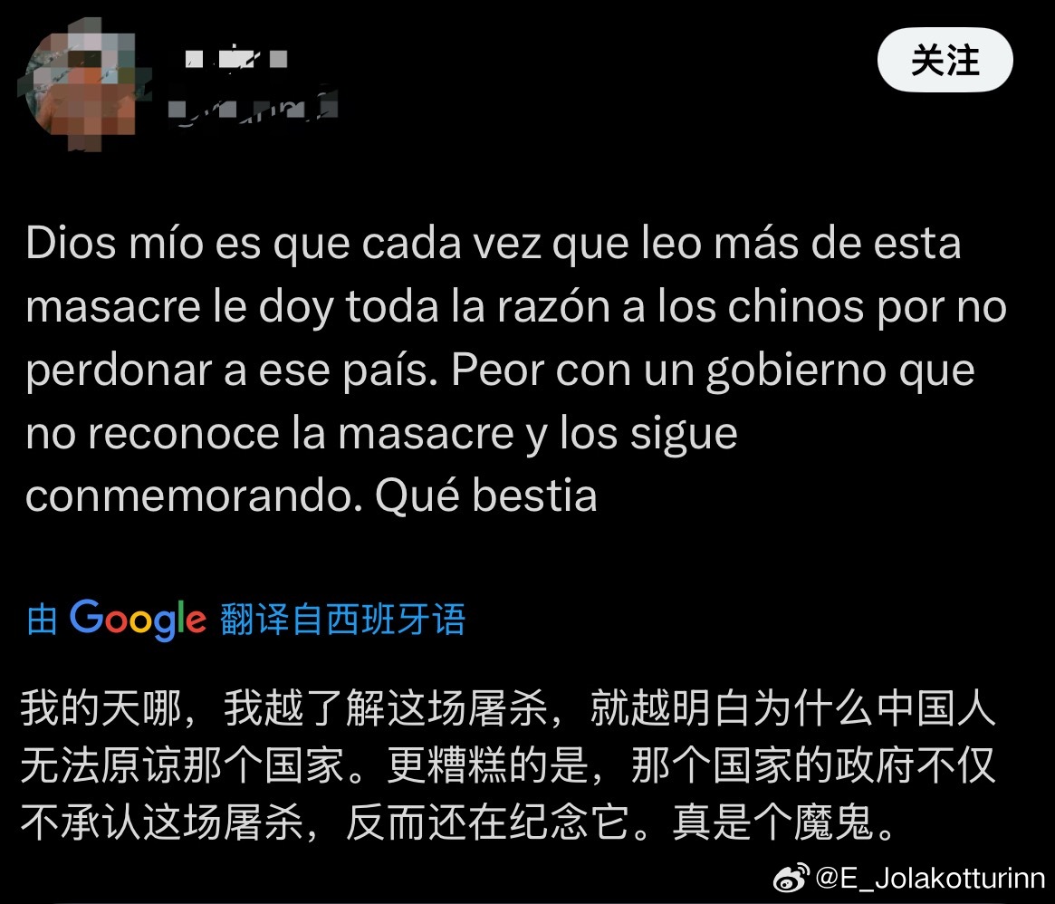 值得欣慰的是,这些内容逐渐受到来自世界各国的善良人民的收藏、阅读和转发,来自巴西、挪威、意大利、西班牙、南非、土耳其、美国、英国、印尼、泰国等多国网友在把这些内容自发翻译成本国语言,越来越多的人开始反思本国教育中对这段历史和中国人民苦难的忽视,越来越多的人愿意去了解这段真实的苦难历史。我甚至看到有不少欧美国家的读者开始提起张纯如女士和她的书,并推荐其他网友阅读。