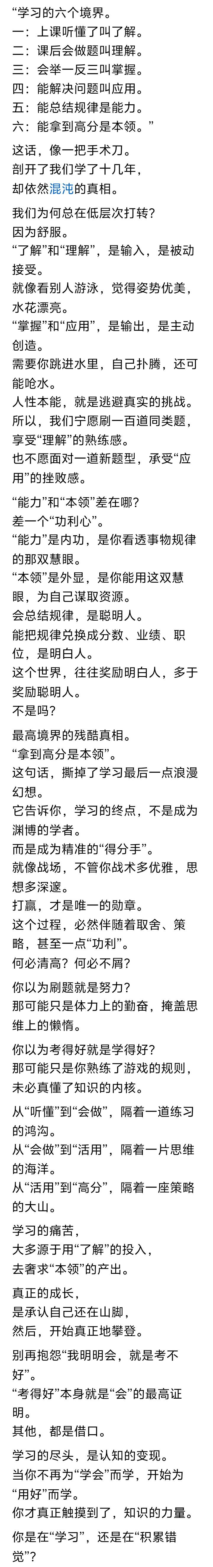 张老师说“学习是你这辈子遇到最简单的事”。 我觉得他说的确实正确,只要掌握了正确的学习方法加上自己的努力,再具备一定的天赋,考高分那就不是事。