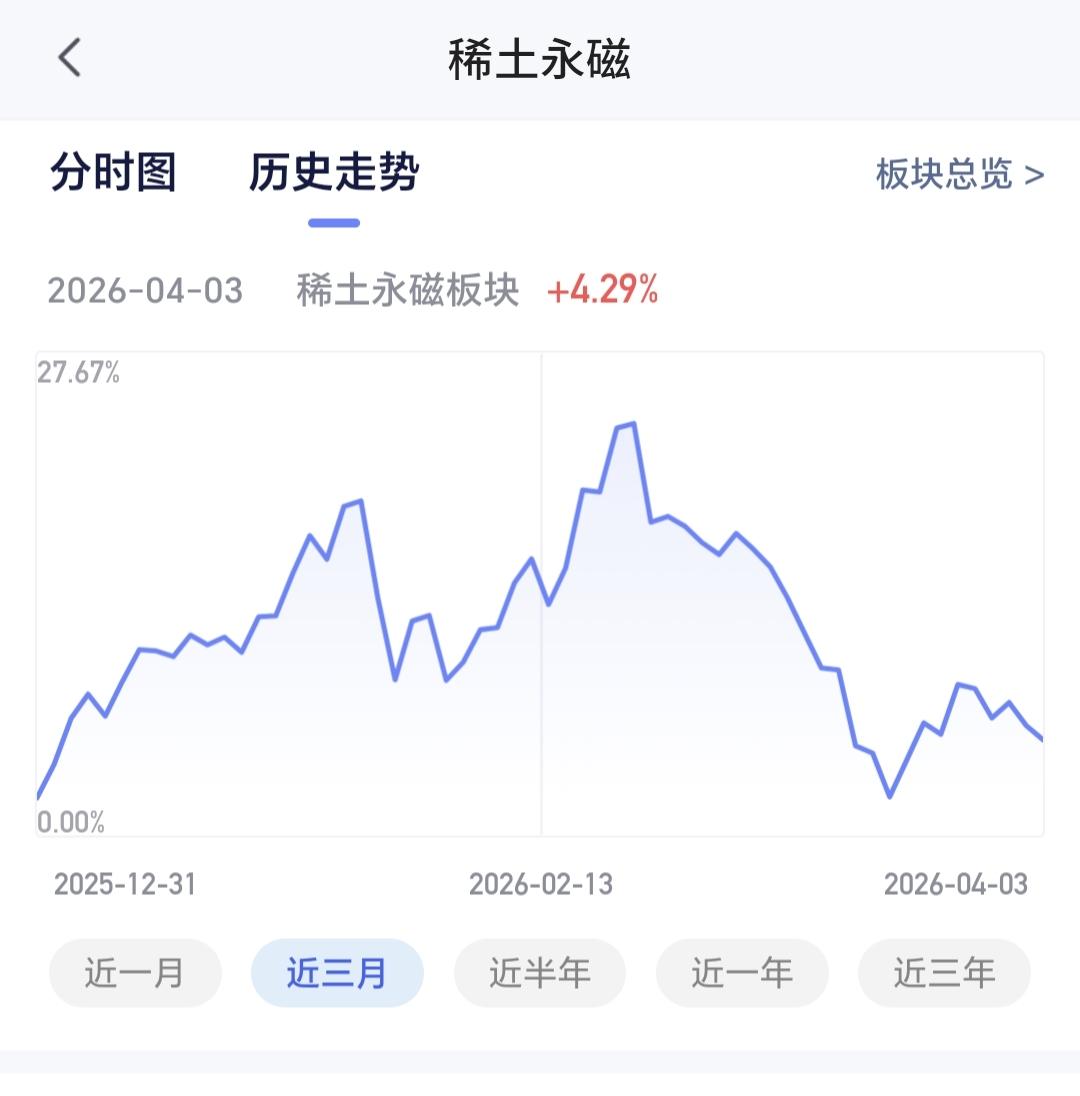 基金:稀土永磁板块的进场点和离场点 稀土永磁板块上周五下跌了1.08%,是连续第