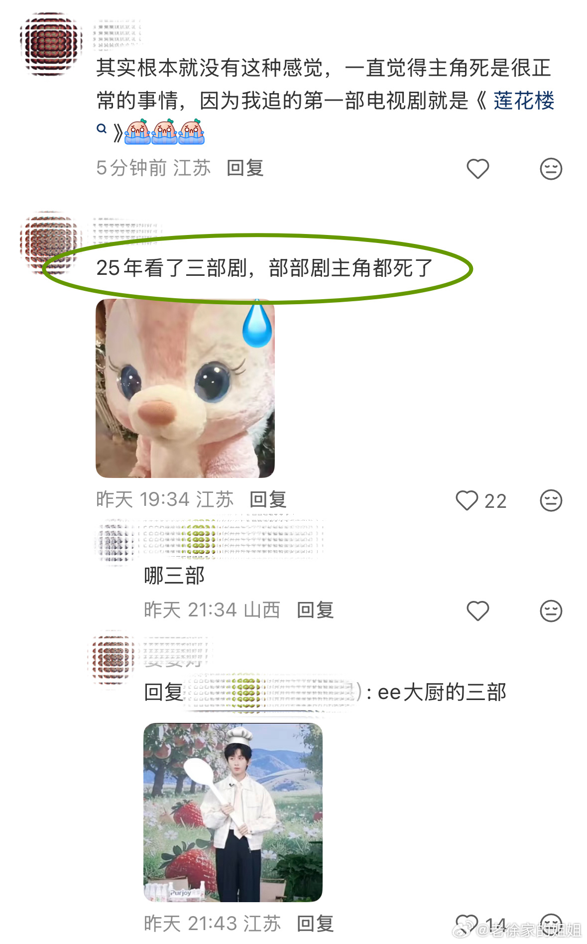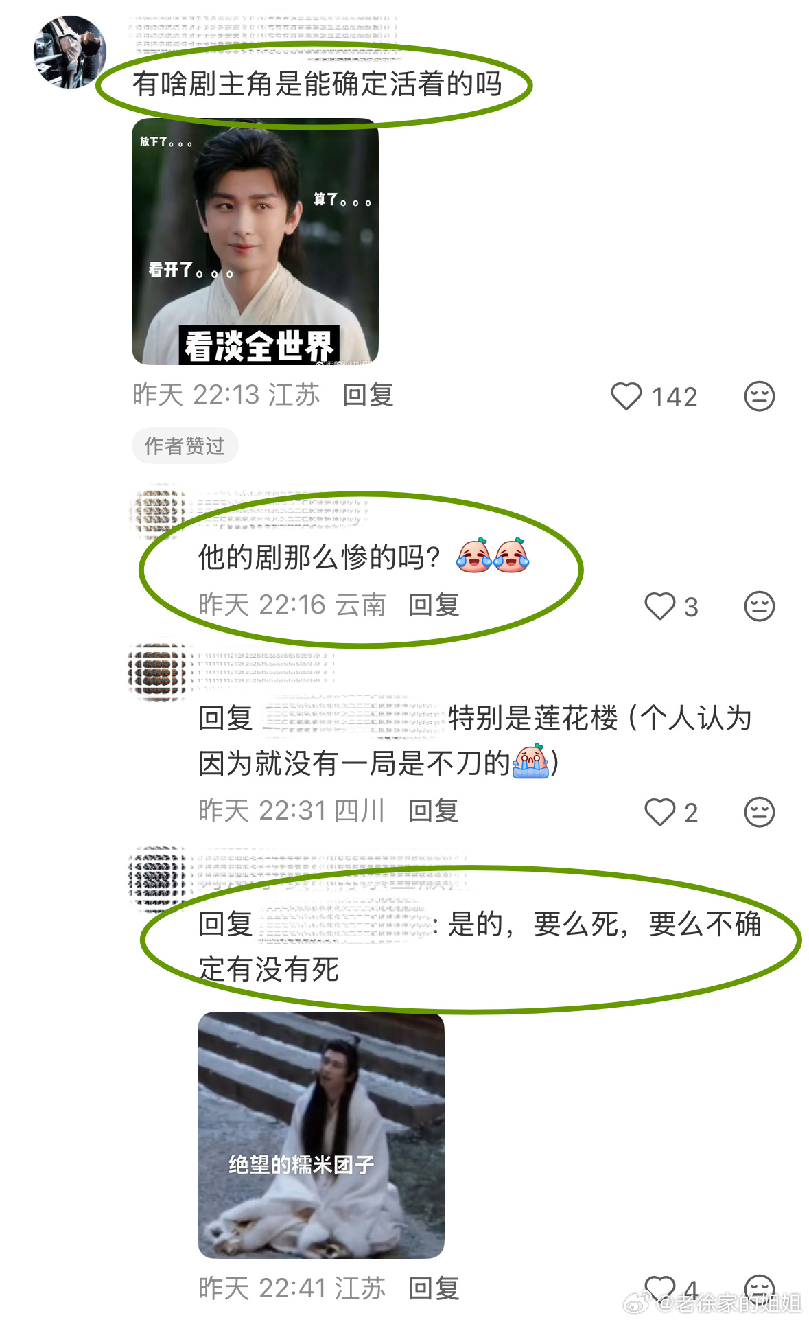 《哪部剧让你第一次意识到主角也会死》?《原来主角还可以不用死》?评论区一句“你是成毅的果果吗”真是有让人又心酸又好笑。
