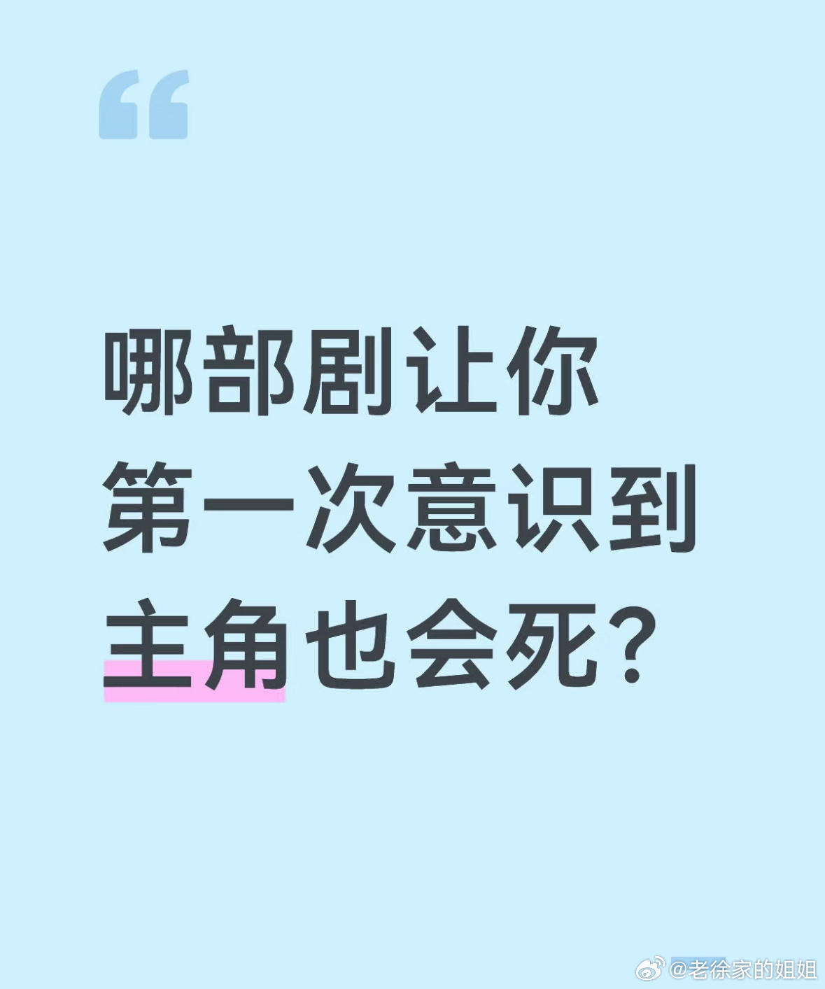 《哪部剧让你第一次意识到主角也会死》?《原来主角还可以不用死》?评论区一句“你是