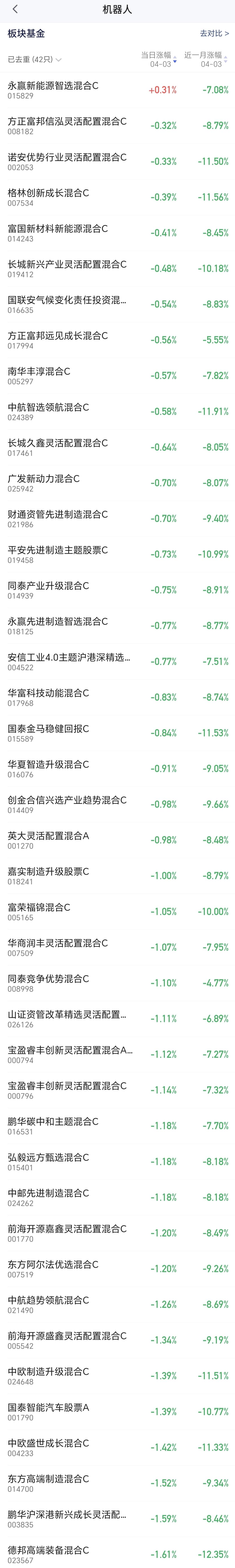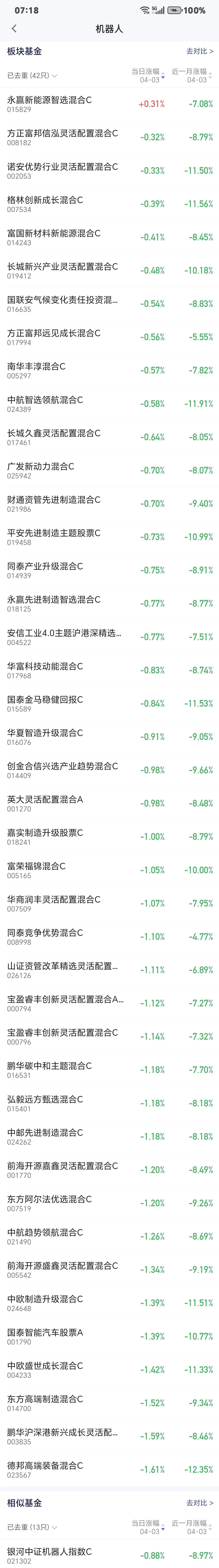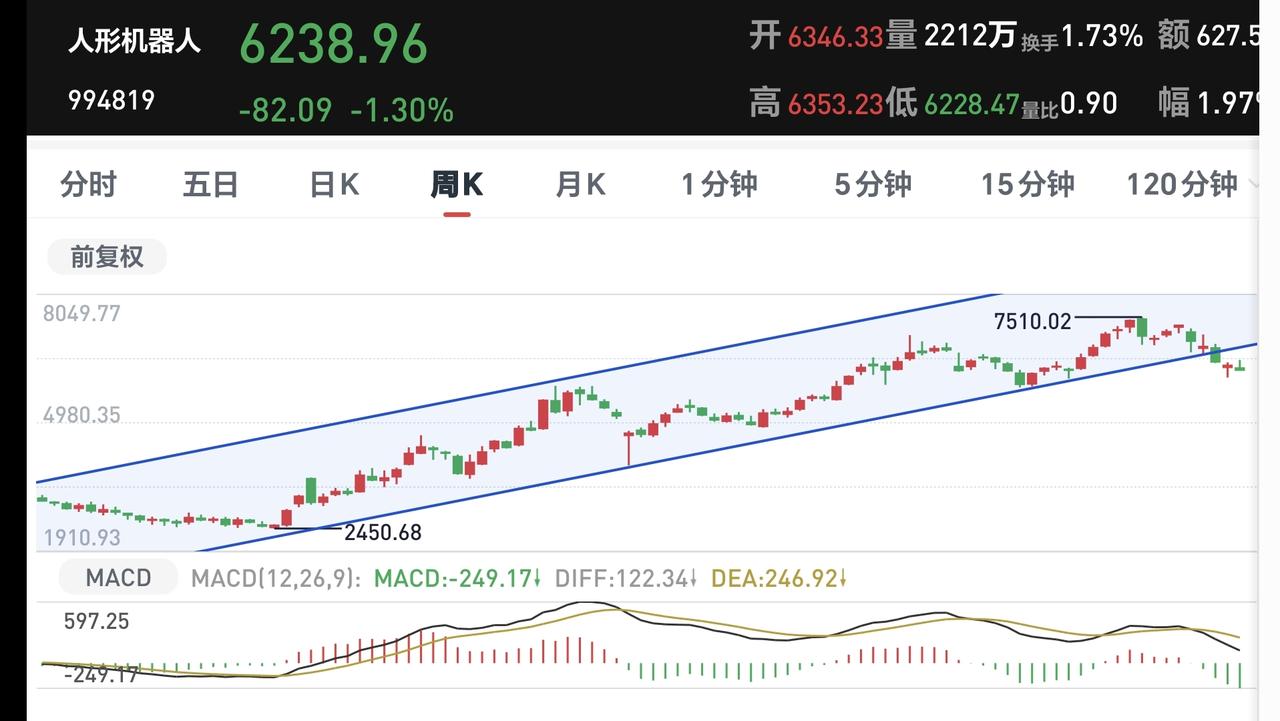 基金:我不进场机器人板块的原因 机器人板块上周五下跌了0.98%,是连续第二个交易日下跌,持有人数在所有板块当中排名第5位,这个板块里面的散户人数也不少。 机器人板块近三个月以来下跌了15.60%,近半年以来下跌了18.27%,近一年以来上涨了10.06%,近三年以来上涨了12.97%,这个板块有42只基金,各只基金的情况见下面的截图6。 机器人板块最近是运行在日线级别短期下跌通道中,而且已经跌破了这个下跌通道的下轨线,有加速下跌的可能性,这个板块的进场还需要耐心等待,需要等待上涨突破这个下跌通道的上轨线,再结合市场的整体走势进行考量,然后决定要不要进场。 机器人板块周线级别已经有效破位了上涨趋势,已经连续三个星期在上涨通道的下方震荡,长线持有的人,在跌破周线级别上涨通道下轨线的那一周,就应该注意风险,现在是继续注意风险中。 机器人板块日线级别和周线级别都处于下跌趋势中,短线持有的人和长线持有的人都需要注意风险,都需要耐心等待下一次的进场机会。 许多人不喜欢空仓和轻仓,他恨不得每天都是满仓,他恨不得每天都有进有出,很难管住自己的手,其实,玩基金是很少操作的,大部分的时间都是在等待,在低位区域的时候,等待进场的机会,进场以后等待阶段性上涨的到来,在高位区域的时候,等待落袋为安的机会。 我现在是不到四成仓位,我就是在等待一个相对的确定性以后进场,比如说,从空中掉下一个篮球,你是从半空中去接住这个篮球,还是等待它落地以后弹几下再抱住它,你认为是哪一种的确定性更强?你认为是哪一种更容易抱住和抱稳,很显然,应该是等待它掉地上弹几下以后,这个时候抱住它,又稳当又轻松。 我没有机器人板块的基金,前段时间观察过几次,但最终还是放弃了这个板块,连无底仓定投都没有进行,因为,我看到那个时候许多人对这个板块都充满了期待,这么多人都看好的板块,肯定不是一个什么好板块,万一被套住了,短期内都是翻不了身的,所有的热门板块退潮之后,都会是一地鸡毛,在两三年之内都不会有翻身的机会,这也是我不追逐热门板块的原因。 我写文章请大家过来欣赏,许多人看了以后,什么痕迹都没有留下,走的时候也是一声不吭,连一个点赞,连一句评论都不会留下,走的是那样的无声无息,这样的人是不地道的,没有做人最起码的准则,我不愿意与这样的人交朋友。