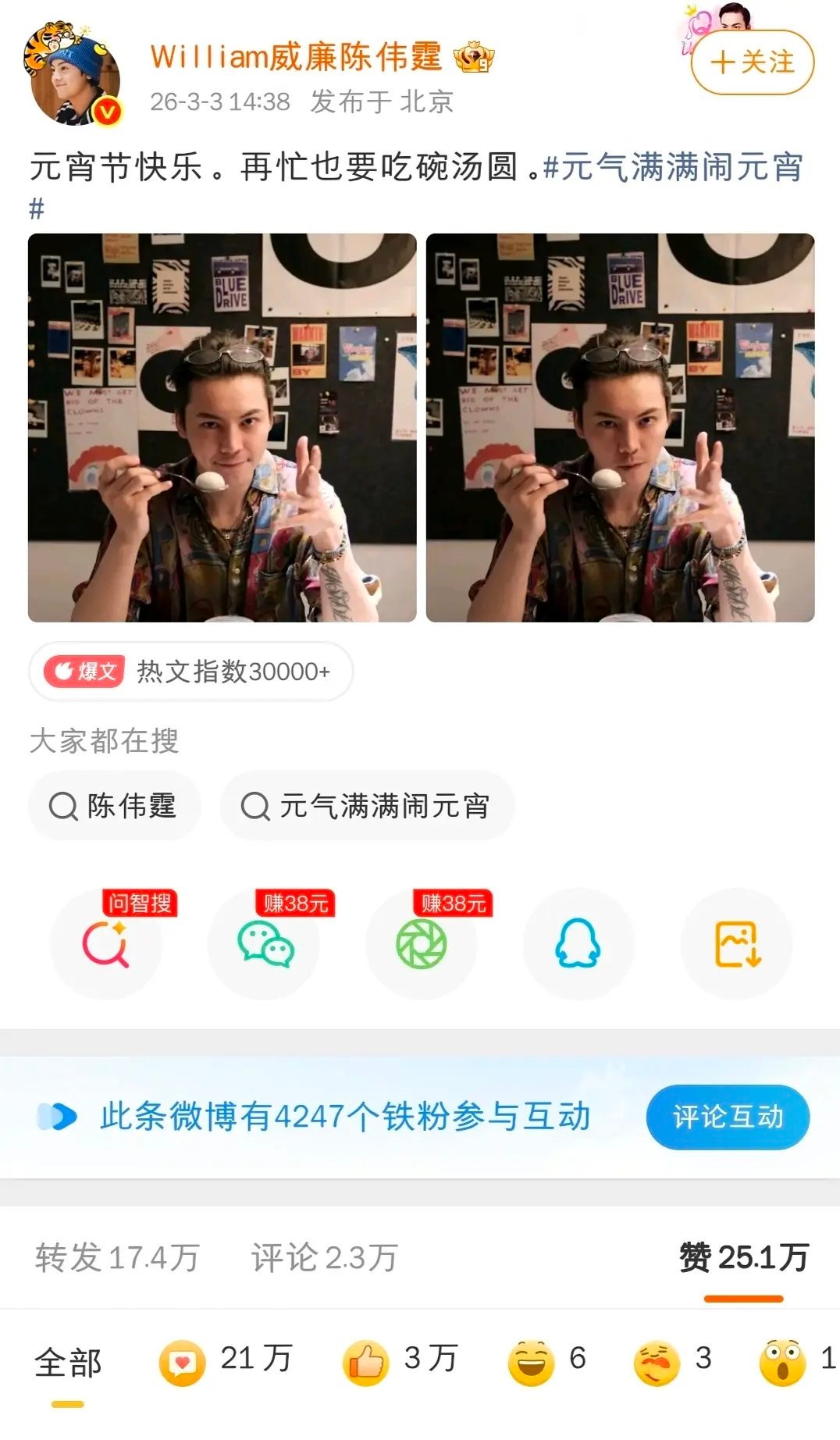 一直以为陈伟霆流量挺高,没想到超话才这么点人