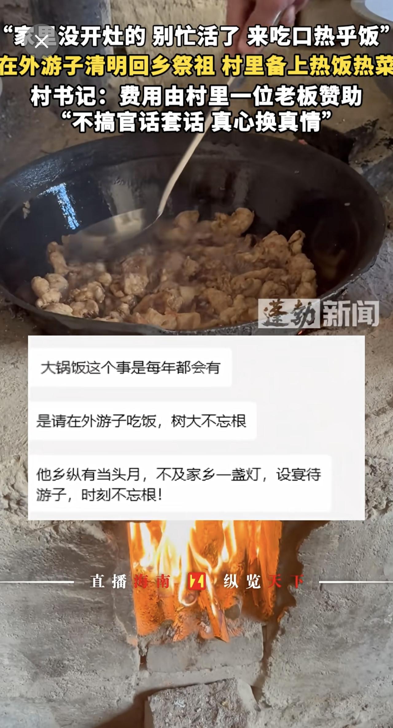 “家里没开灶的 别忙活了 来吃口热乎饭”在外游子清明回乡祭祖,村里备上热饭热菜,村支书:费用由村里一位老板赞助,不搞官话套话,真心换真情