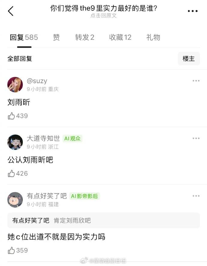🎤:你们觉得THE9里实力最好的是谁?刘雨昕、虞书欣、许佳琪、喻言、谢可寅、安