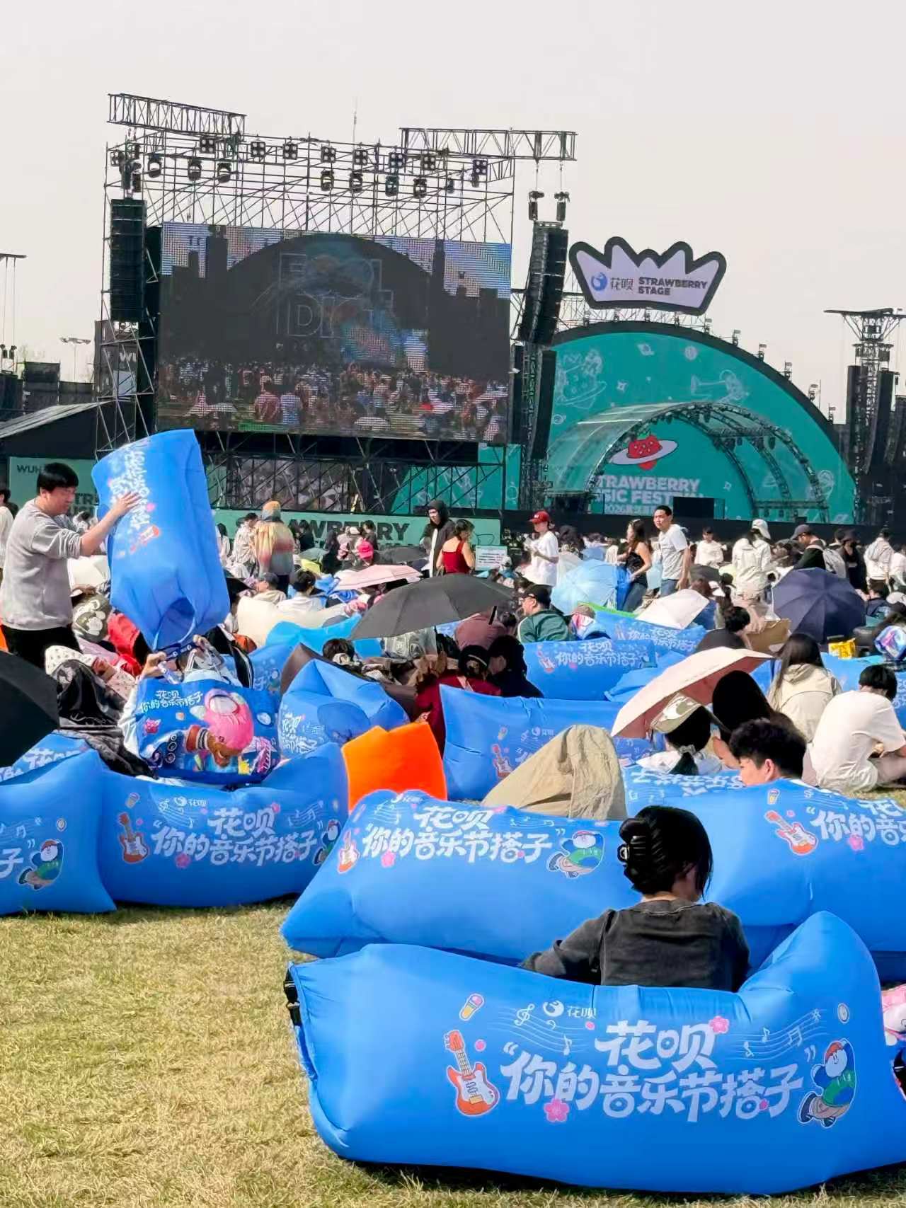 武汉草莓音乐节服务太顶了没想到音乐节也能这么舒服,刷到现场充气沙发有人帮充气、拍