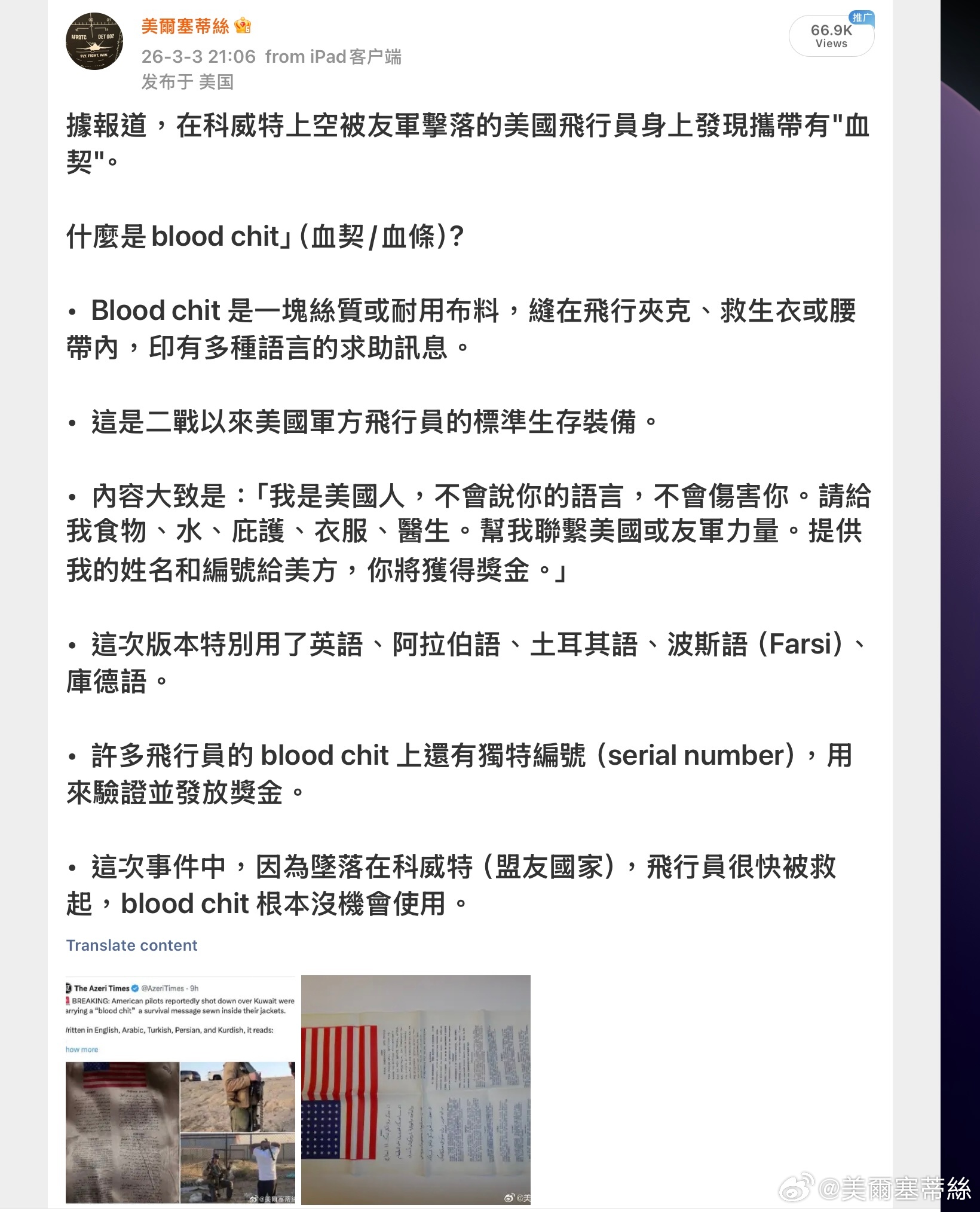 每一位美國飛行員身上都攜帶有"血契"。网页链接