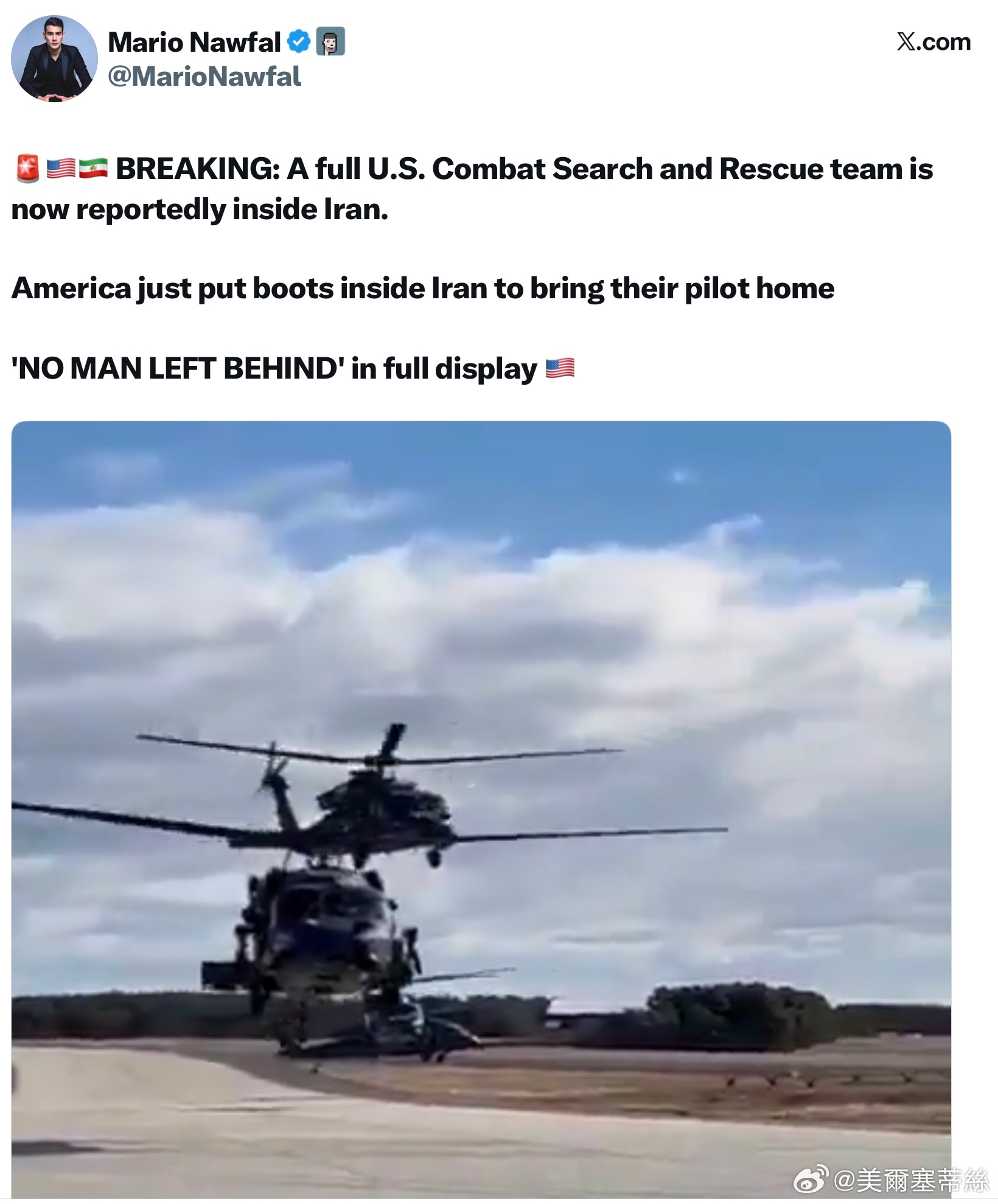 據報道,一支完整的美國戰鬥搜索與救援(CSAR)小組據報已經進入伊朗境內。