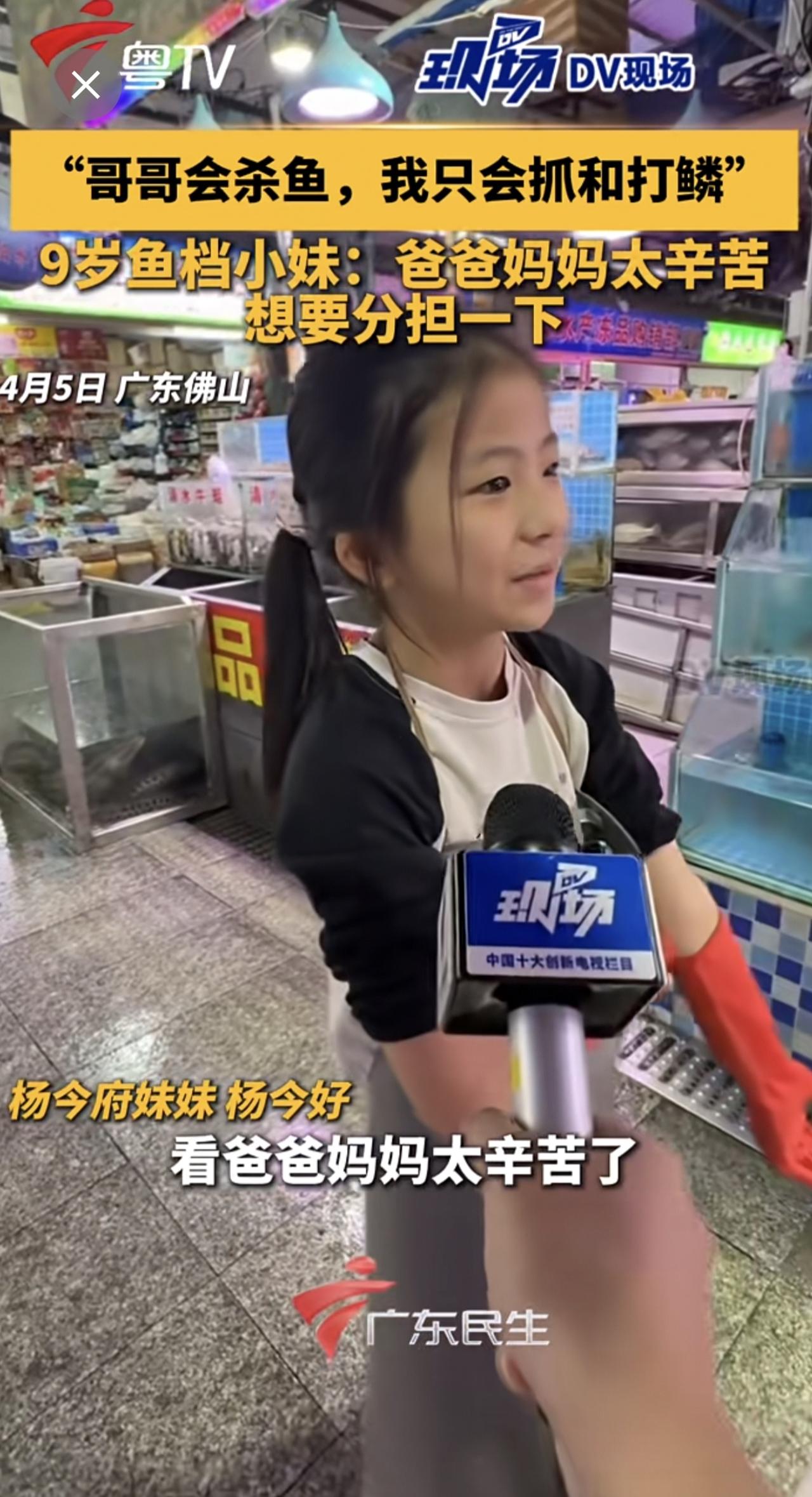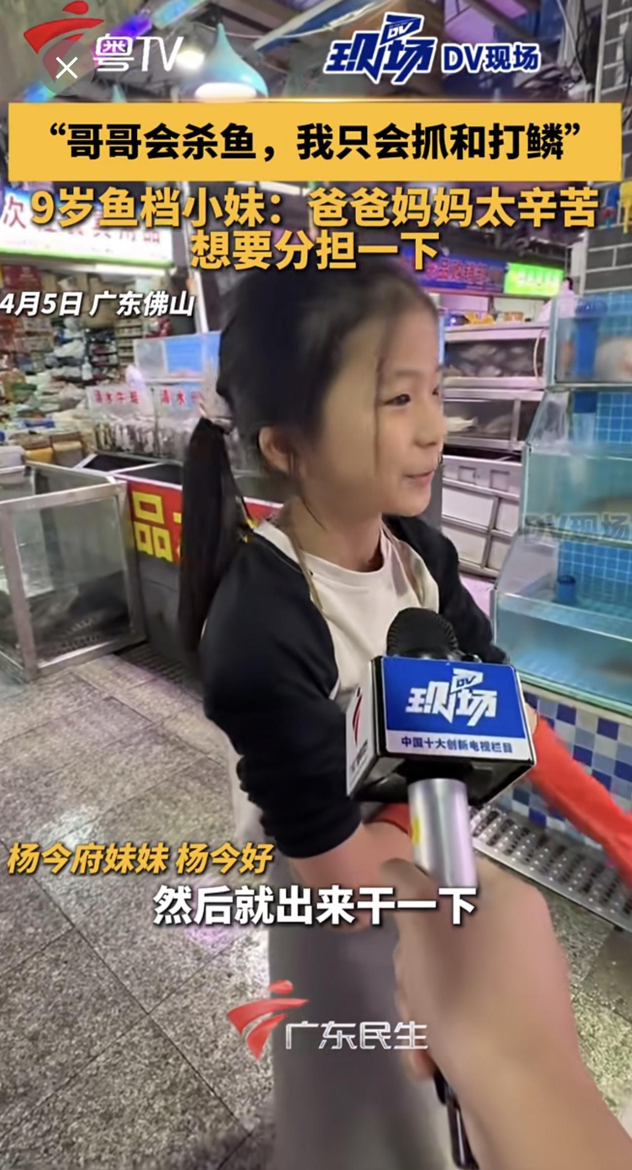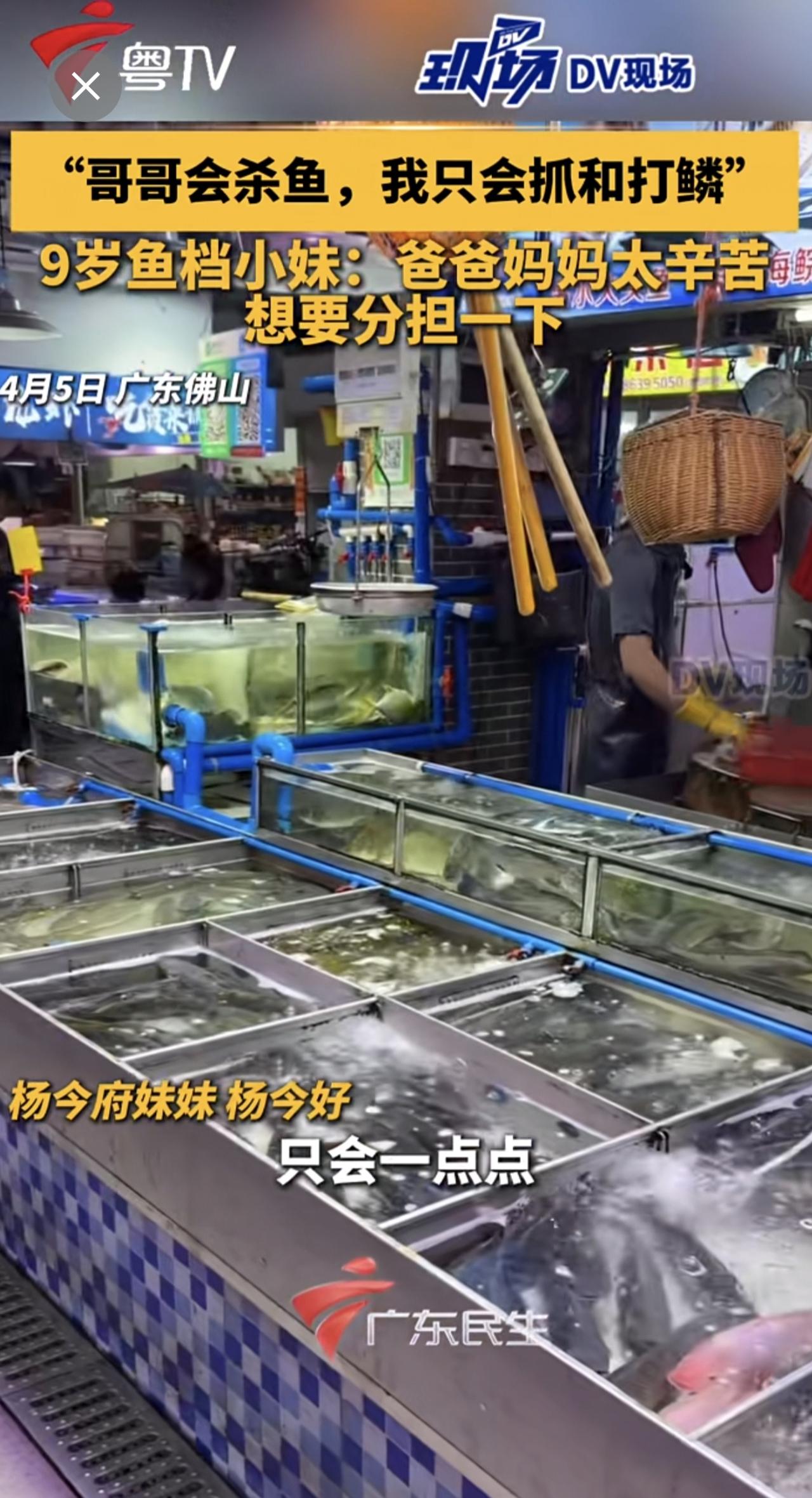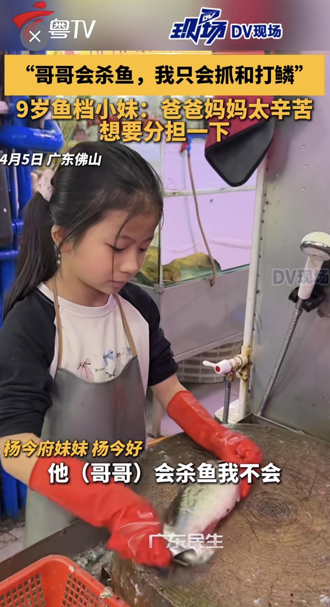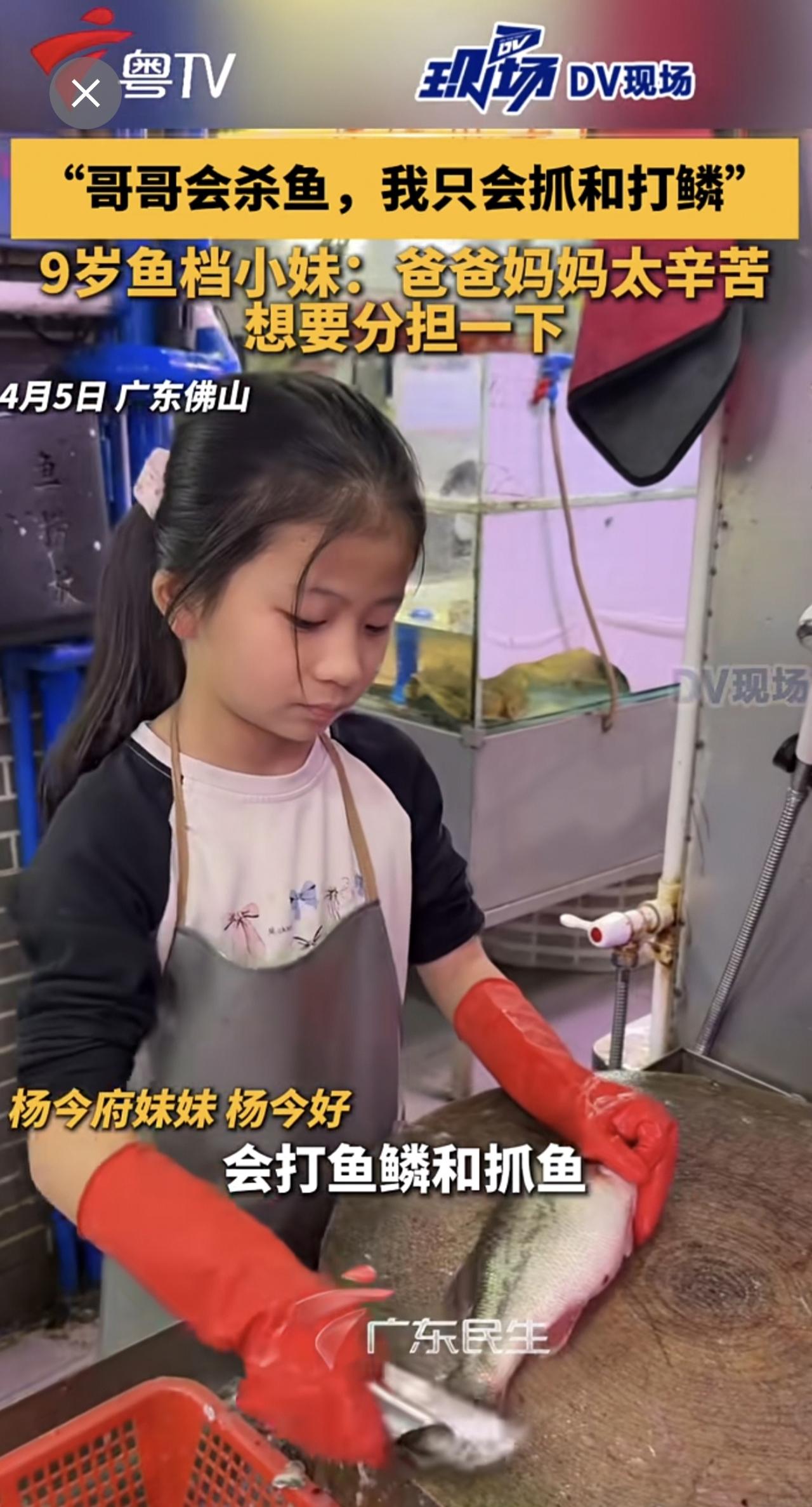 “哥哥会杀鱼,我只会抓和打鳞”,9岁鱼档小妹:爸爸妈妈太辛苦,想要分担一下
