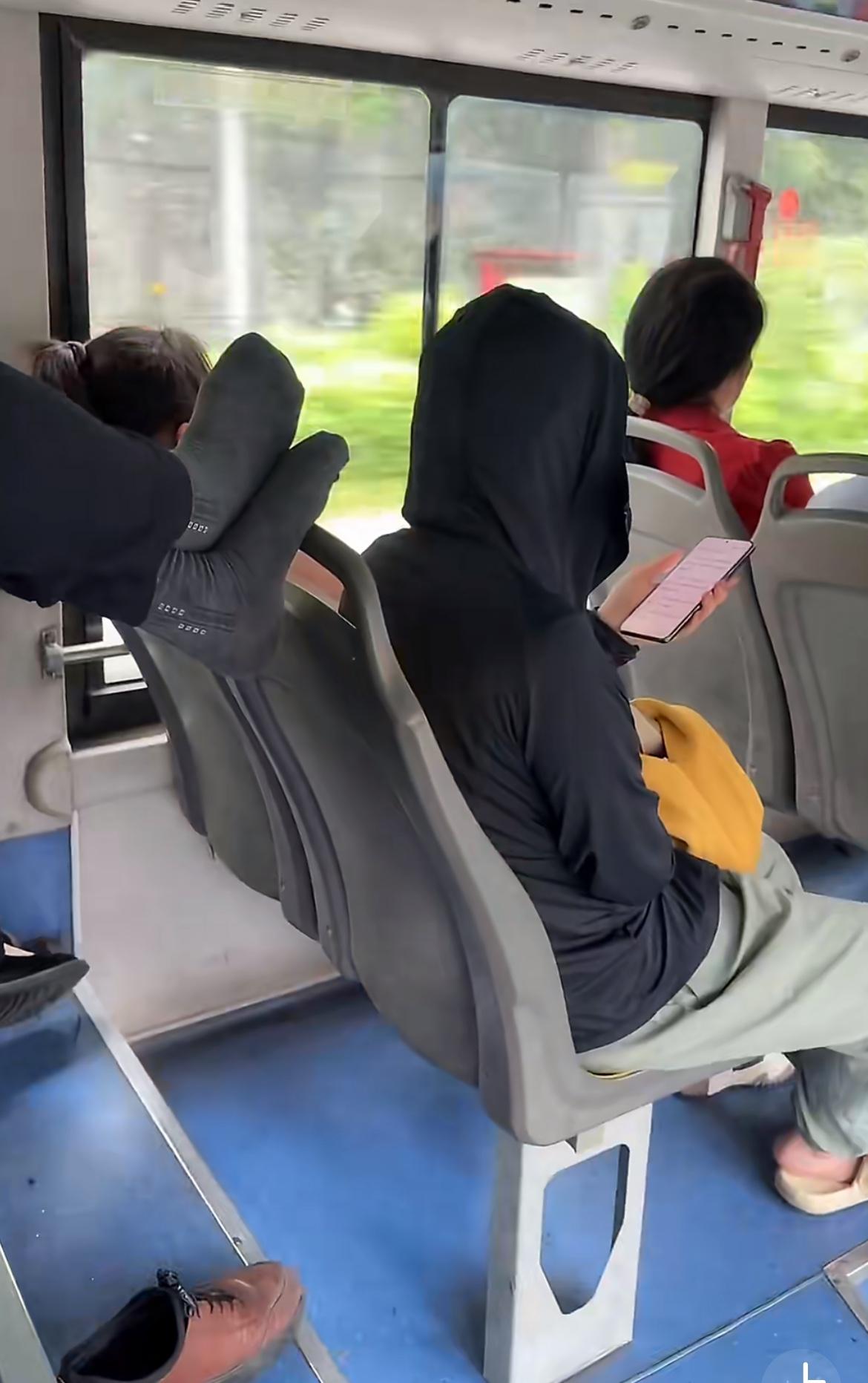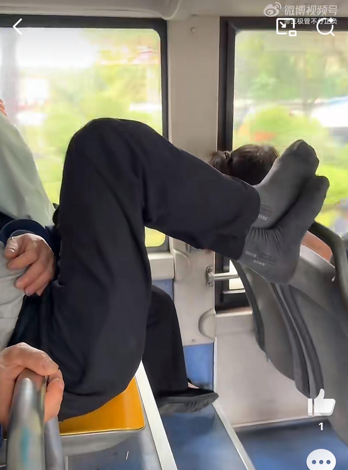 广州公交车上,曝光一下这个极其没素质的大爷。4 月 5 日,一网友坐公交,看到大爷坐在最后一排,脱鞋,把自己的臭袜子和脚搭在前排的座椅靠背上,显得相当怡然自得。前排坐了一个小年轻,带着连帽衫,专注的刷着手机,可能没有意识到后面大爷的行为。在广州经常坐公交,还头一次遇到这种没素质的大爷。