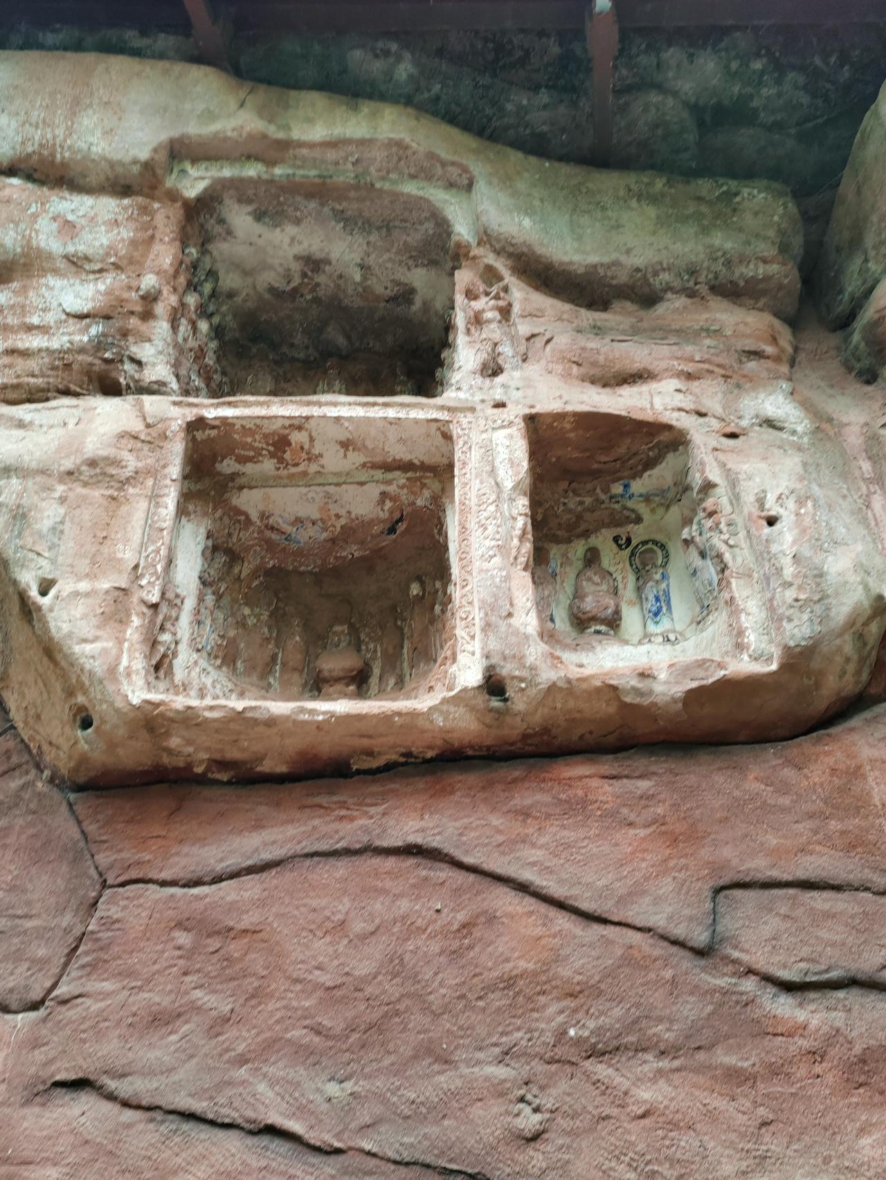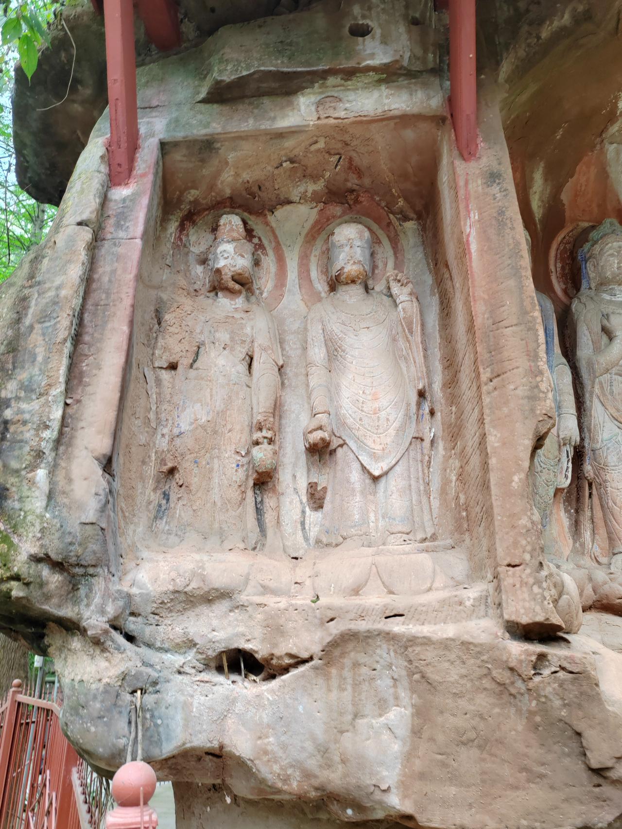 蒲江飞仙阁,崖壁藏千年佛像,风过山间,似有仙音。