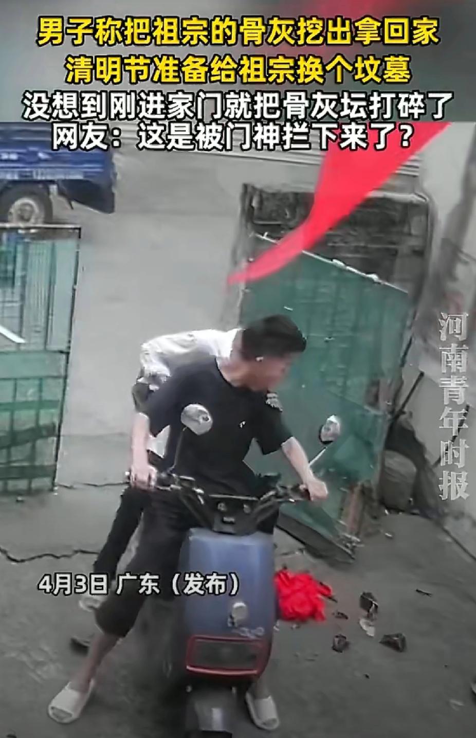笑中带泪!清明迁坟尽孝心,刚进门把祖宗骨灰坛摔碎,网友:这是想留家里享福 清明祭祖本是尽孝,广东这位大哥却遇上了哭笑不得的事!4月3日,男子想着给祖宗换个好墓地,特意把骨灰挖出来带回家,准备挑好日子再下葬。 一路小心翼翼,生怕有半点闪失,结果刚跨进家门门槛,手一滑“哐当”一声,骨灰坛直接摔碎,骨灰撒了一地。大哥当场僵住,估计心里默念:完了完了,这下真没法交代了! 本来是一片孝心,想让先人住得更安稳,谁料意外来得太突然。不少网友调侃:这是老祖宗嫌路上累,不想走了,干脆留家里享福;还有人说,这是岁岁平安,碎碎大吉,别往心里去。 其实谁都不是故意的,清明本就是缅怀先人、心存敬畏的日子,意外难免,心意到了比啥都强。遇到这种事别慌,赶紧用红布细心收拢,换个新坛子妥善安置,诚心祷告,先人肯定能体谅后人的难处。 生活里总有猝不及防的小插曲,孝心不会因为意外打折,平平安安、顺顺利利才是最大的福气。 清明节 清明祭祖 人间真实 生活趣事 孝心无价 大家遇到过这种尴尬又无奈的事吗?你们那遇到这种情况有啥讲究?评论区聊聊!