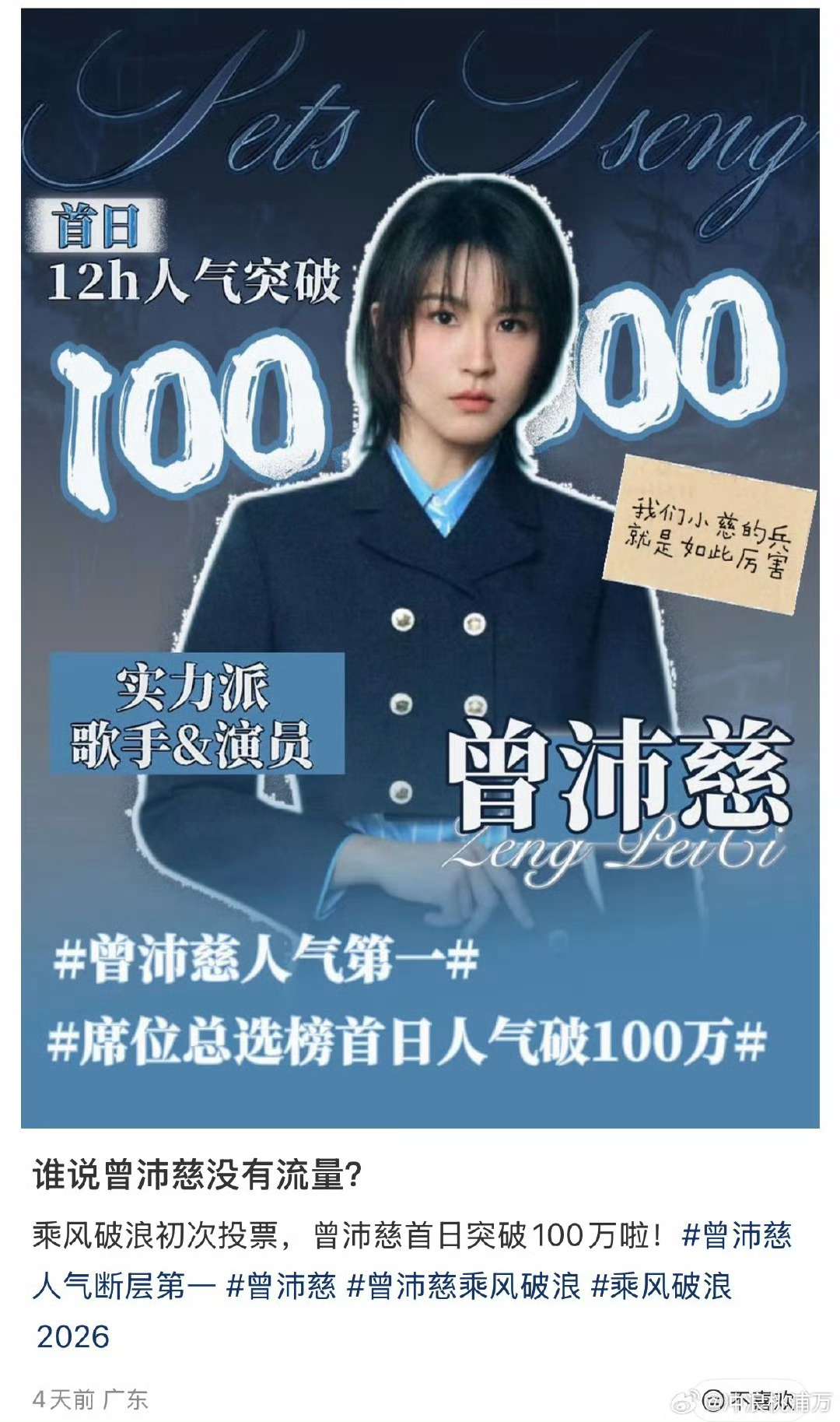 曾沛慈热度这么高吗谁懂啊!《乘风2026》初舞台曾沛慈一开口直接把青春DNA炸出来✨稳到离谱的唱功直接圈粉新粉,小姐妹都追着要去考古《终极一班》,这热度真的实至名归👏曾沛慈热度乘风2026