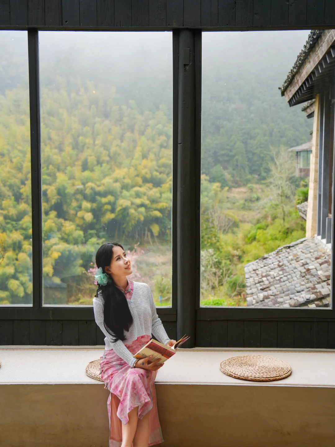 ✅悬崖观景台茶席一定要拍!绿条幅+蒲团+茶具,国风氛围感直接拉满