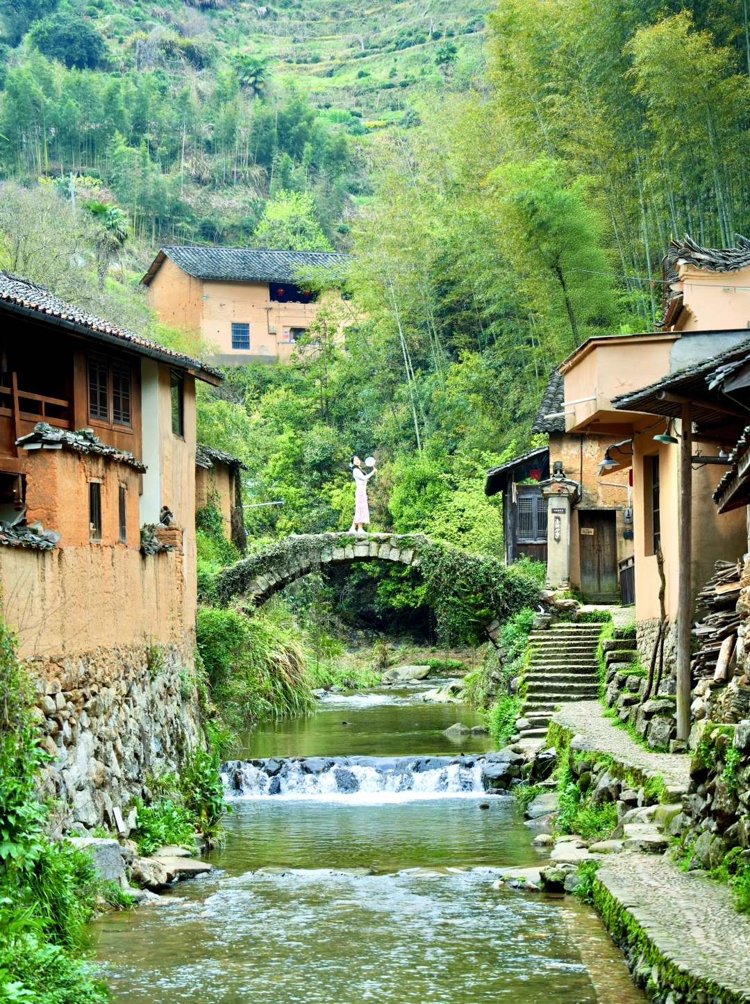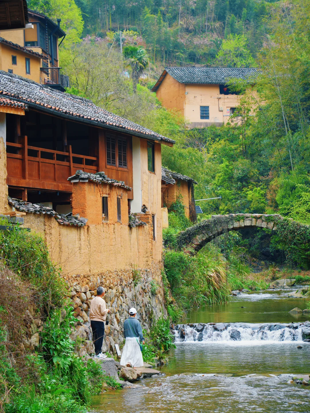 ✅石拱桥上拍「小桥流水人家」,溪边石板路、黄墙小径慢慢走,撑一把油纸伞,氛围感拉满