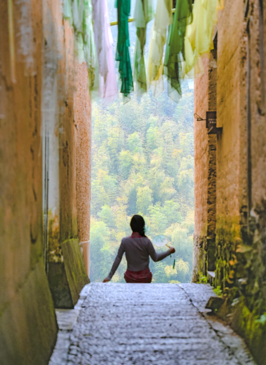 ✅沿着石阶往上走,黄墙黛瓦层层叠叠,搭配国风汉服,随手拍都是复古氛围感大片