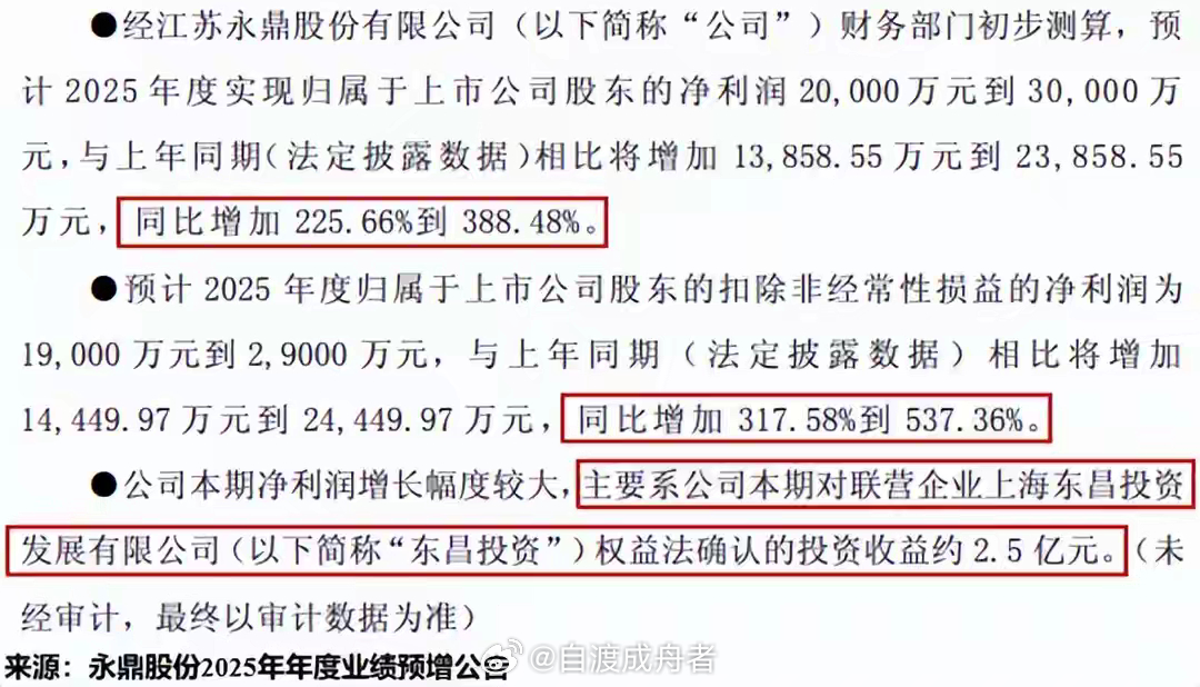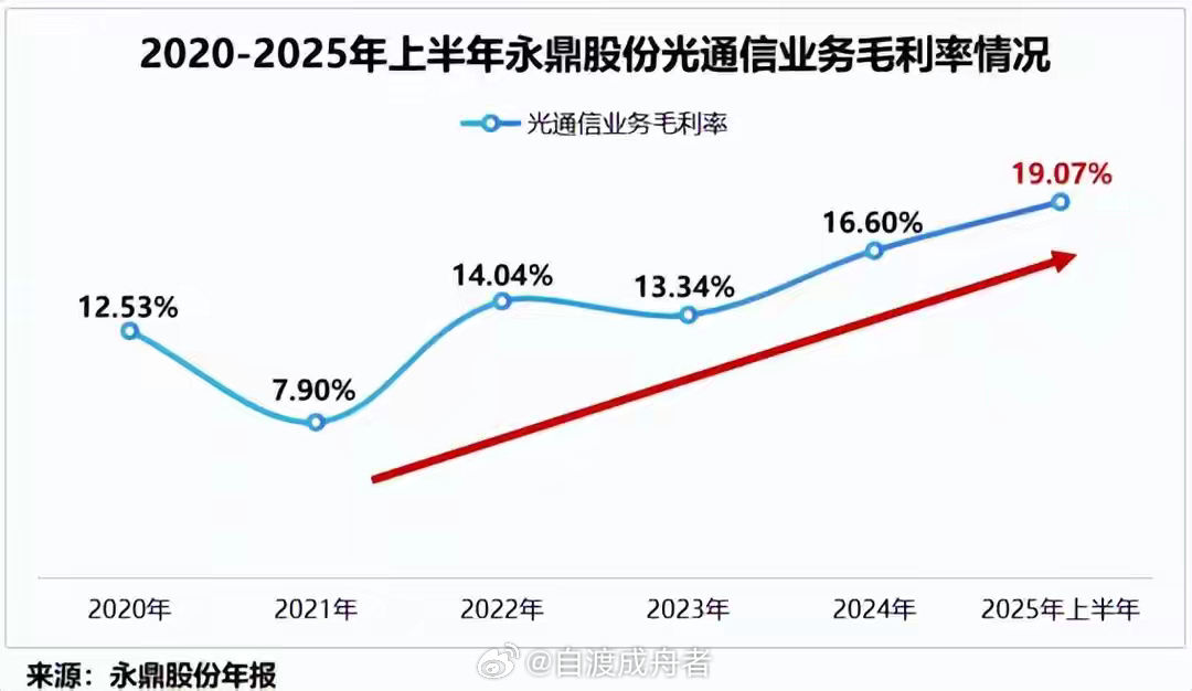 利润狂飙300%,永鼎股份,迎来“第二春”!光通信,杀出一个“全能玩家”!说到光通信,大多数人首先想到的可能是源杰科技、长光华芯这些光芯片先锋,或是中际旭创、新易盛等光模块巨头,亦或是中兴通讯、烽火通信这些光通信系统设备商。但有一家老牌企业,凭借四十余年的技术积淀,悄然构建起一条独特的护城河。它,就是永鼎股份。那么,永鼎股份的独特之处在哪里?不妨一起来看看,它在光通信领域的产业链布局。永鼎股份的故事始于1978年,其前身是苏州吴江的一家小型通信电缆厂。1994年,公司正式改制,并于1997年成功上市,是国内光缆行业首家上市的公司。此后,公司基于传统线缆业务打下的基础,逐步向光通信领域拓展发力。如今,在光通信领域,永鼎股份已形成覆盖“光棒/光纤/光缆/芯片/器件/模块/大数据应用”的全产业链体系。在棒纤缆方面,公司光纤预制棒板块实现高沉积速率光棒、超低损耗光纤及特种光纤技术突破;光纤生产通过连续拉丝项目提效2.5%,产品合格率同步提升。在激光器芯片方面,2025年上半年,公司重点推进的高速率激光器芯片产品已成功通过客户认证,实现批量订单预订。与此同时,公司的光芯片及组件、WDM系列波分产品、高密度光纤连接器、高速光模块等核心产品线持续满负荷运转,产品良率指标稳步提升。凭借全产业链的成本优势,永鼎股份光通信业务毛利率实现稳步攀升。2021-2025年上半年,公司光通信业务毛利率从7.9%跃升至19.07%,足足提升了11个百分点。不过,永鼎股份并未止步于光通信这单一赛道。早在2015年,公司就以6.86亿元收购上海金亭汽车线束有限公司100%股权,正式切入汽车线束领域。为强化新增业务的自主研发能力,公司不仅成立了汽车线束技术分中心,还将研发队伍从单一的通信产品研发扩大至汽车线束产品的研发。2016年,永鼎股份研发人员从2015年的260人增加至467人,占比也从9.73%提升至14.18%;此后,公司研发人员占比基本稳定在15%-18%之间。得益于持续投入的研发体系建设与人才梯队储备,公司高压线束已突破0.19mm2超细线径焊接技术瓶颈,实现微型化与高可靠性双提升。与此同时,其自主研发的ABS/EPB/FAKRA智能线束系统,首创切线-压接-装配全流程自动化产线,配套一体化智能装备已批量应用于头部车企。目前,永鼎股份汽车线束业务的客户结构多元,主要涵盖传统整车制造商、新能源汽车制造商和二次配套客户三类。此外,公司还在积极布局低空经济领域,已与飞行汽车领域领军企业小鹏汇天建立了深度合作关系。从营收贡献来看,汽车线束业务已取代传统光通信,成为永鼎股份的第一大营收支柱。2015年,公司光通信业务占比高达59%,汽车线束仅占24%;而到2025年上半年,汽车线束占比已提升至34%,反超光通信近16个百分点。然而,随着汽车线束行业进入存量竞争阶段,竞争日趋白热化,公司汽车线束业务的营收开始出现下滑。2022-2024年,公司汽车线束营收从16.51亿元逐年下滑至12.06亿元;直到2025年上半年,该业务才迎来增长拐点,同比大增48.9%至7.63亿元。但这一增长是以压缩利润空间为代价的,2025年上半年,公司汽车线束业务毛利率为14.62%,同比下滑超3个百分点。那么,永鼎股份整体的业绩表现如何?据永鼎股份业绩预告,2025年,公司实现归母净利润2亿元至3亿元,同比增加225.66%至388.48%;扣非净利润1.9亿元到2.9亿元,同比增加317.58%到537.36%。乍看之下业绩十分亮眼,那利润为何如此暴增?这种增长又能否持续?究其原因,2025年公司净利润大增并非来自主业改善,而是源于一笔2.5亿元的投资收益——来自联营企业东昌投资房地产业务板块处置项目子公司。若剔除这笔投资收益,按2025年归母净利润上限3亿元计算,主业利润仅剩约5000万元;按下限2亿元计算,主业则处于微亏状态。显然,永鼎股份也明白,靠投资收益撑不起未来。于是,公司将目光投向了高温超导带材业务。2024年,公司在超导领域实现了国产MOCVD设备规模化生产;国内首条高温超导直流电缆投入商业运营,进一步推动了高温超导商业化进程。目前,公司依托业内独有的超导薄膜磁通钉扎技术,研制出强磁场用高性能超导带材,已实现其在磁约束可控核聚变、超导感应加热、磁拉单晶等领域的研究与应用。技术突破与商业化落地共同推动超导业务开始贡献实质营收。2025年上半年,公司超导及铜导体业务实现营收3.51亿元,营收占比提升至15.54%。当然,全力押注高温超导带材的这份决心,从永鼎股份的在建工程科目中也能窥探一二。2025年半年报显示,公司2.53亿元在建工程中,东部超导项目一项便达1.66亿元,占比65%,足见其对超导业务的倾斜力度。写在最后!四十余载深耕,永鼎股份从老牌线缆企业蜕变为横跨光通信、汽车零部件、高温超导的“全能玩家”。它靠全产业链打基础,靠并购汽车线束找增长,靠超导业务赌未来。既有破局勇气,亦有清醒认知,在守住老本行和开拓新赛道之间,它正从“做大”转向“做强”,走出一条老牌企业的突围之路。