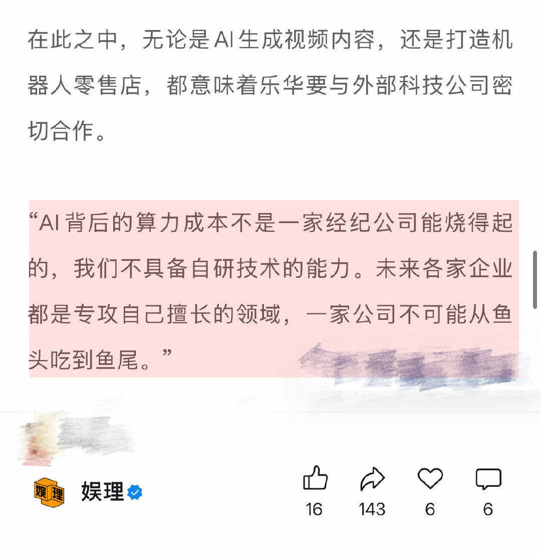 杜华谈真人偶像不会被AI取代 杜华说AI把过去的打法都颠覆了 杜华说AI还无法直接培养真人爱豆!像如何发现好苗子、对新人未来的预判等等,这种说不清道不明的直觉,恰恰是经纪公司最传统也是最核心的能力。AI可以辅助宣发推广、内容创意、物料制作,但对新人潜力的感知,人的经验和直觉是AI无法替代的!