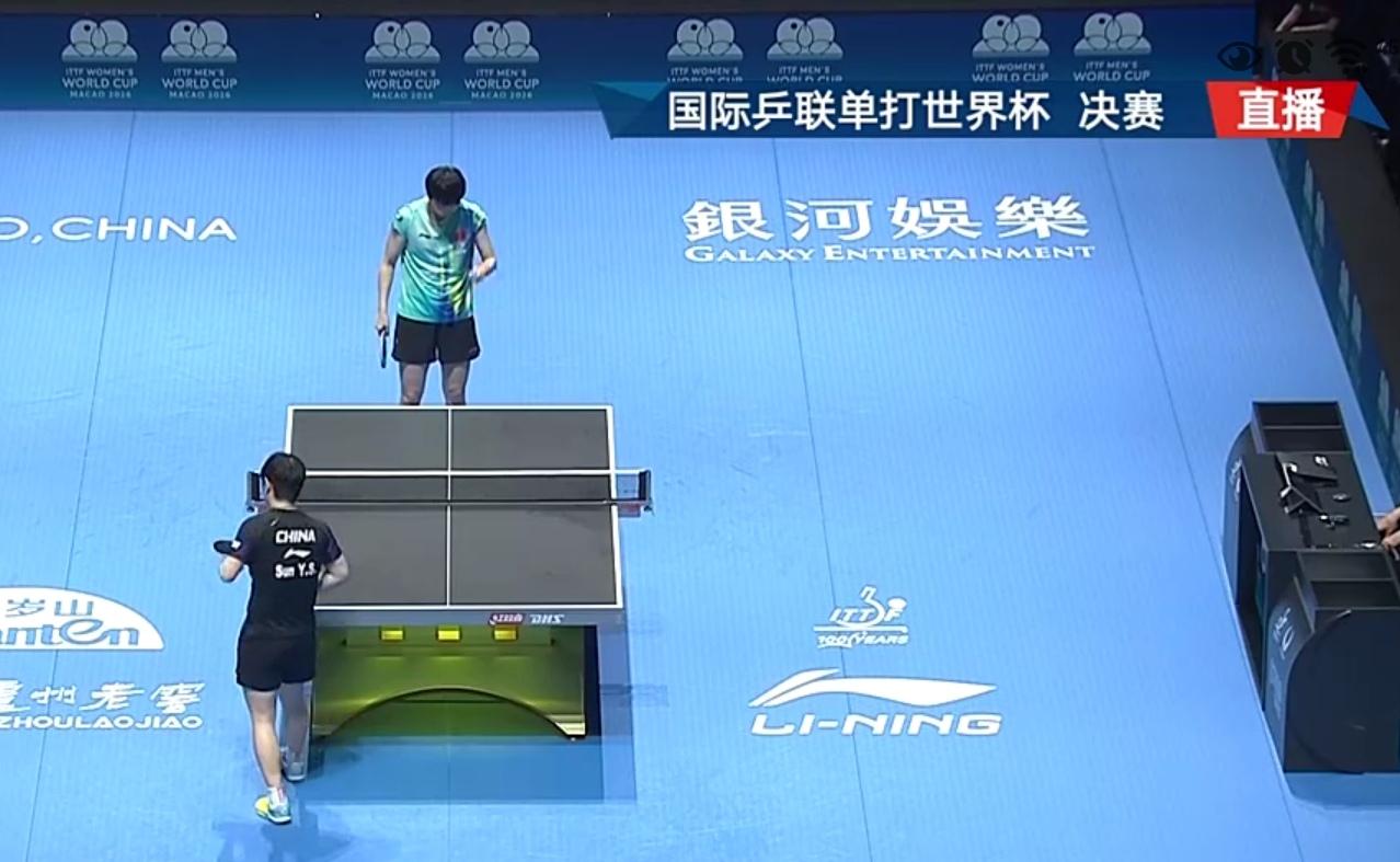孙颖莎4-1战胜王曼昱勇夺国际乒联单打世界杯女单冠军 在刚刚结束的2026年国际乒联单打世界杯女单决赛中,中国名将孙颖莎和王曼昱展开了一场巅峰对决。双方经过5局的较量,孙颖莎4-1战胜王曼昱夺冠。比赛过程如下: 第一局,比赛开始王曼昱取得4:1的领先。孙颖莎把比分追到6-6平。双方战成9:9平,孙颖莎连得两分,11:9先拔头筹取得开门红。 第二局,开局阶段孙颖莎取得3:1的领先。王曼昱追回一分,孙颖莎连续得分8:2领先。王曼昱把比分追到6:8,孙颖莎10:6拿到局点,王曼昱挽救两个局点,孙颖莎11:8拿下此局,局分2-0领先。 第三局,开局阶段双方战成1平、2平、3平。王曼昱连得两分5:3领先,孙颖莎把比分追到5:5平。双方交替得分,孙颖莎10:8拿到局点。王曼昱把比分追到10:10平。最终,孙颖莎13:11惊险拿下此局,局分3-0领先。 第四局,孙颖莎开局阶段取得4:1的领先。随后双方互有得分。孙颖莎8:4领先。王曼昱把比分追到8:8平,王曼昱连得三分,11:8扳回一局,把局分追到1-3。 第五局,孙颖莎开局阶段取得6:1的领先。王曼昱追回一分,孙颖莎9:2扩大领先优势。10:3拿到冠军点,王曼昱挽救4个冠军点,孙颖莎11:7拿下此局。局分4-1战胜王曼昱夺冠。无赛场 孙颖莎 孙颖莎演技 孙颖莎年终排名 孙颖莎积分明细