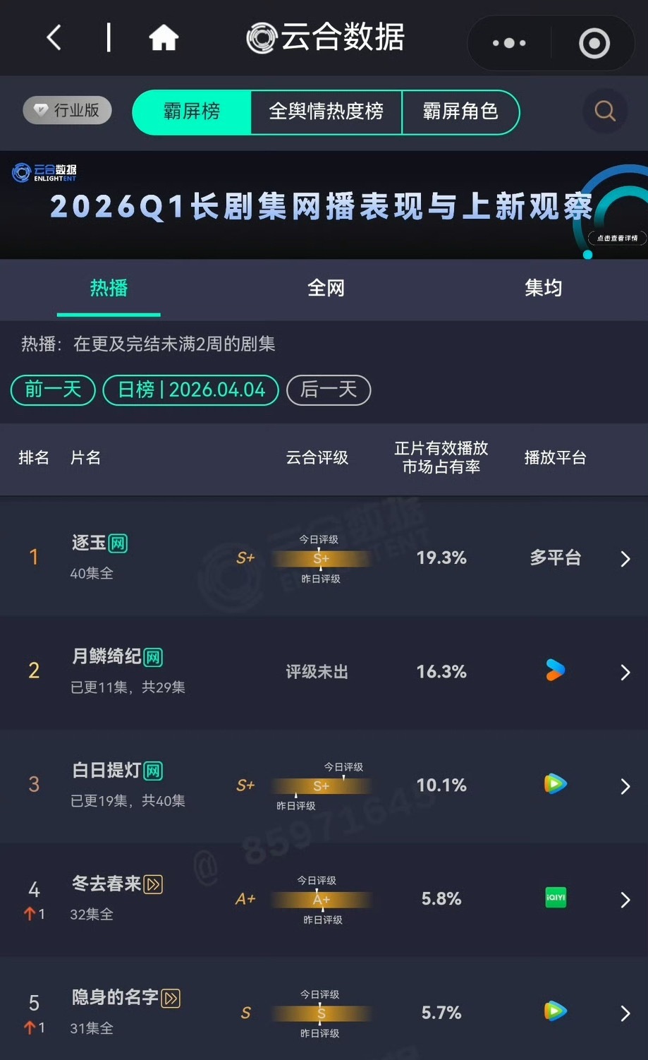 月鳞绮纪昨日云合占比16.3%,涨势还挺不错的,雾妄言造型一集比一集漂亮,都来看这个奇迹嘟嘟